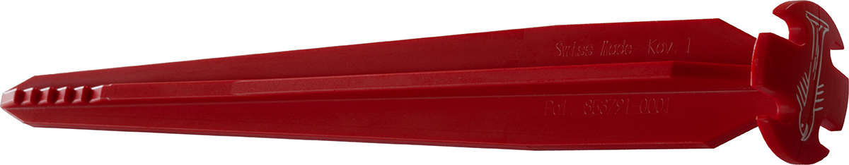The RedTrout tent pegs from SwissPiranha are made from the high-performance plastic PiranhaNT and offer significant advantages over conventional pegs: they are ultra-light and shock-resistant. Their tapered shape makes them easy to hammer in, while an x-shaped cross-section with a sawtooth profile provides a secure hold in a wide variety of soils. The flat head compresses the ground and maximizes holding power. Notches reliably hold the tent lines in place and provide the best anchoring. The high-performance PiranhaNT plastic is forgiving when hammered in with a hammer, axe or stone - there are no sharp edges that damage the tent fabric. SwissPiranha also scores in environmental friendliness: production is in Switzerland and its high-performance plastic requires up to 13 times less energy than pegs made of aluminum. Bent RT pegs can be restored to their original shape after 5 minutes at 160°C in the oven
