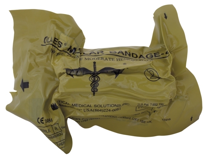 The OLAES Modular Trauma Bandage is the latest generation of pressure bandages with 3 m of pressed gauze and a removable air-tight dressing in the wound pad, as well as a pressure applicator.