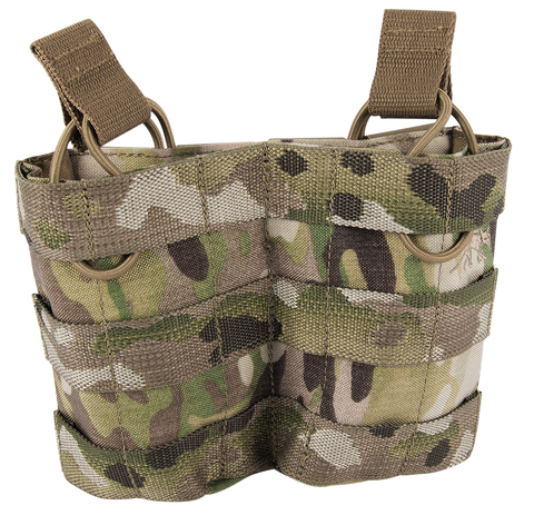 The Tasmanian Tiger 2 SGL Mag Pouch BEL M4 MKII is a short magazine pouch designed to hold two M4 magazines (side by side), secured by bungee cord.