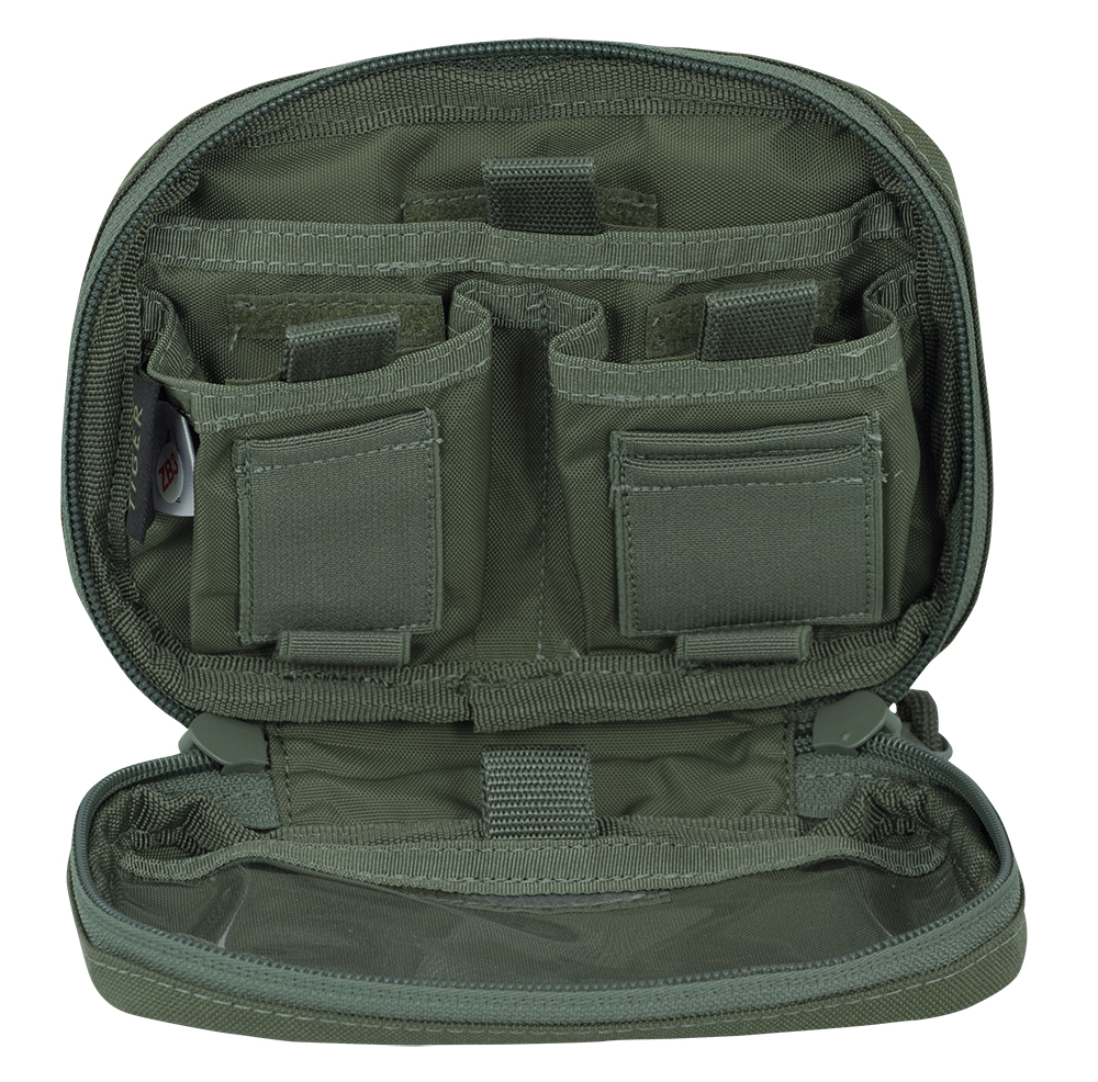 Tasmanian Tiger Admin Pouch in stone gray olive, fully equipped to TL8305-0278/I1 and TL8305-0281 IRR safe.