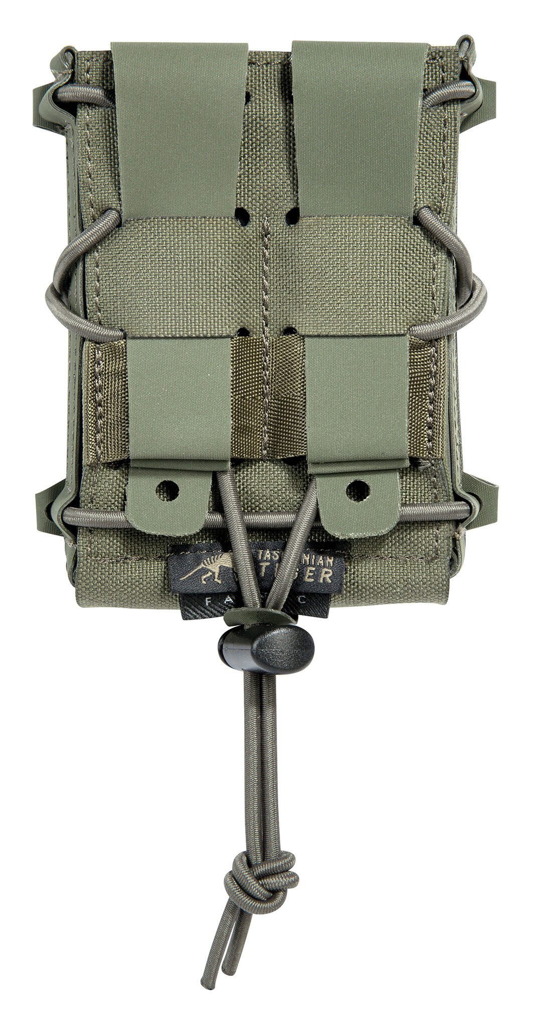 The Tasmanian Tiger DBL Mag Pouch MCL is a lightweight, open Multi-caliber magazine pouch for 2 magazines type M4 / G36 PMAG / Sig / AR15 / Steyr AUG / Sig 55X.