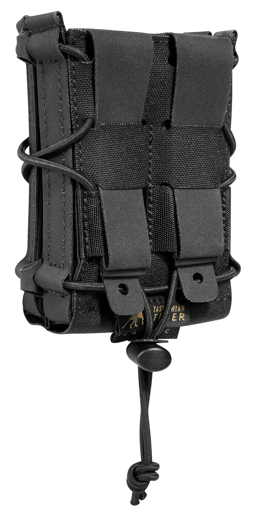 The DBL Mag Pouch MCL is a short and Mudular Laser Cut double magazine pouch from Tasmanian Tiger for 2 magazines type M4 / G36 PMAG / Sig / AR15 / Steyr AUG / Sig 55X. The pouch can be compressed by bungee cord and fixed with cord stopper. It can be combined with the M.O.L.L.E Reverse System and requires 2 M.O.L.L.E loops for attachment. There are also laser cut M.O.L.L.E slots on the front. Made of durable Cordura 700.