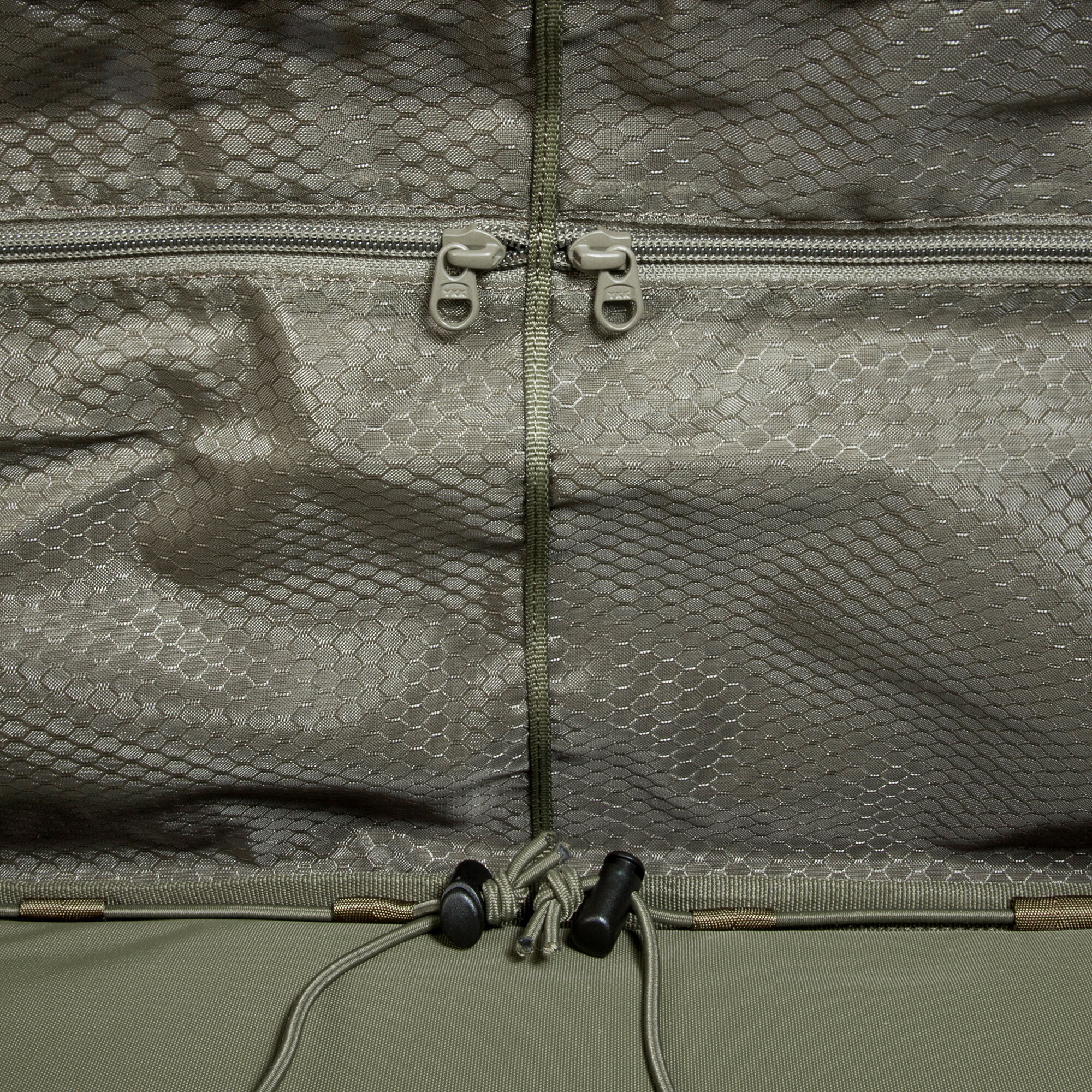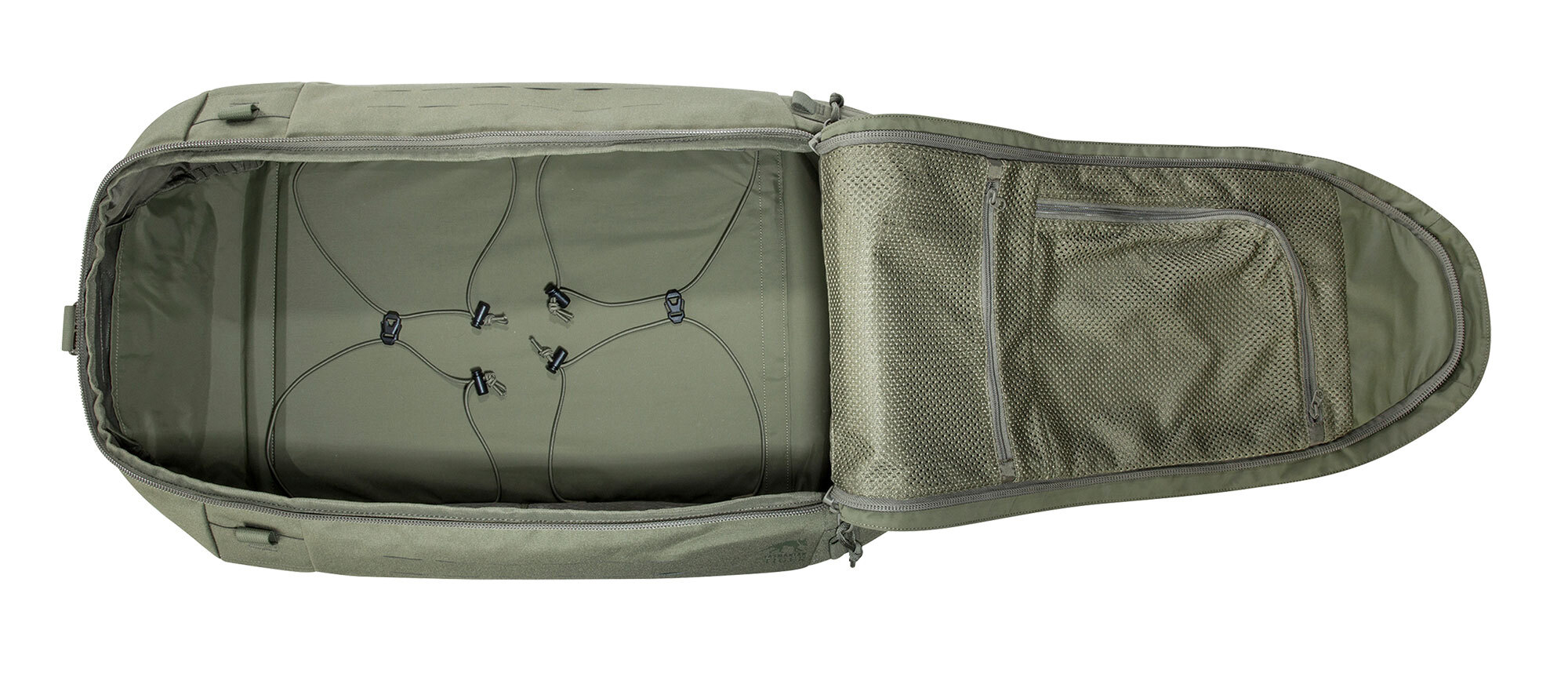The Tasmanian Tiger Duffel 65 is easy to load thanks to the large opening in the main compartment. The main compartment is lockable. If necessary, the entire bag can be compressed, and the Duffel 65 also has removable shoulder straps that can be stowed in the lid. MOLLE on the outside allows individual extensions.