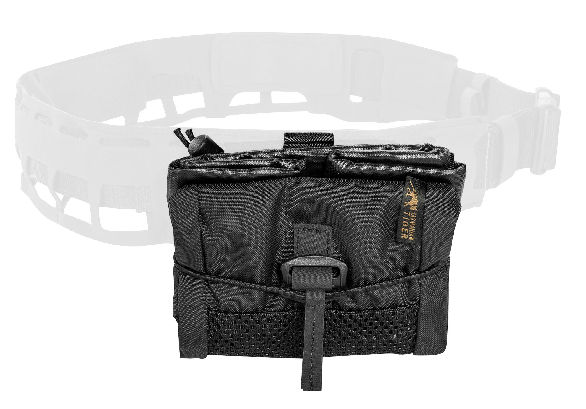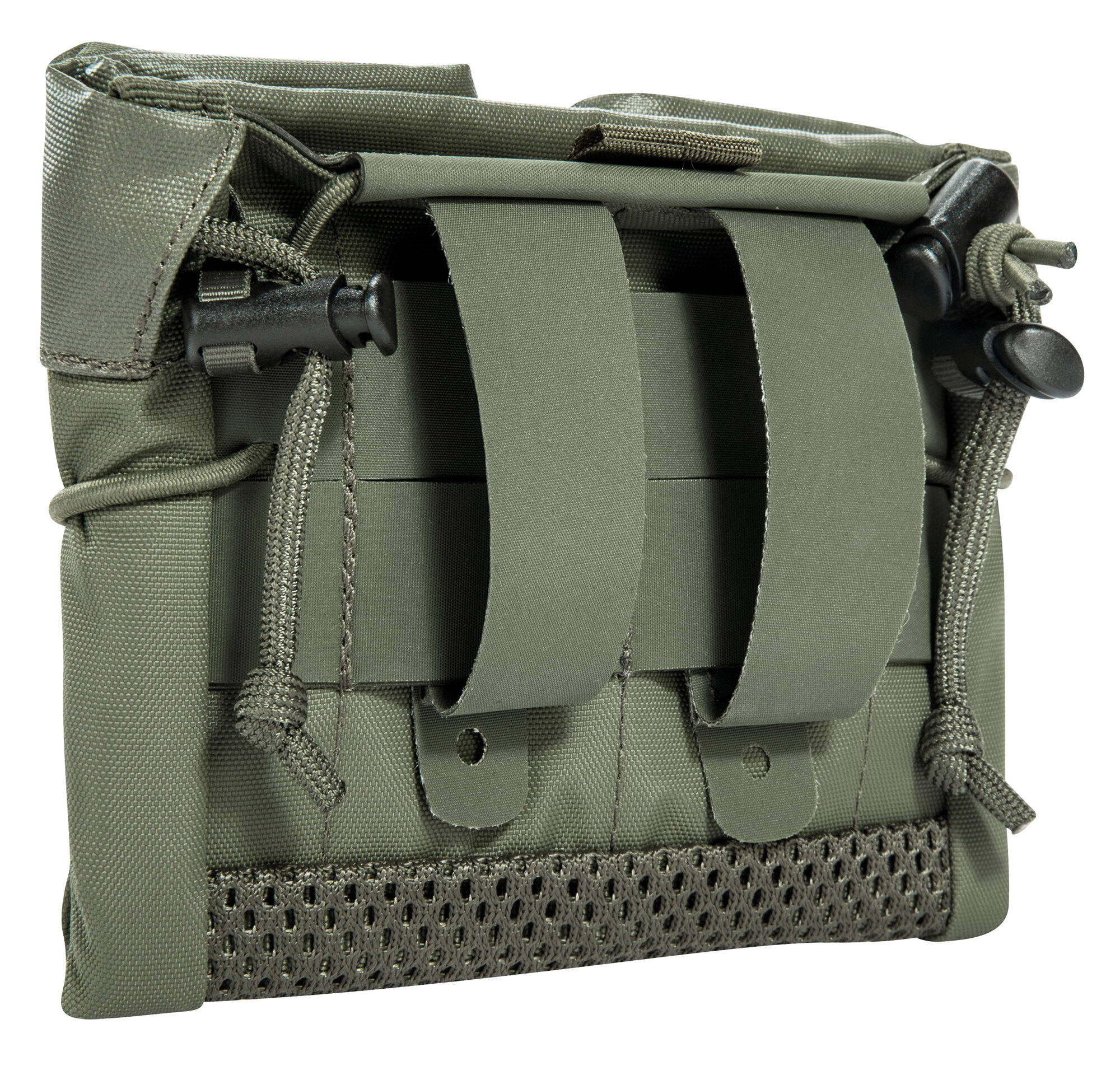 The Dump Pouch Anfibia from Tasmanian Tiger is equipped with a mesh bottom for quick water drainage. The Dump Pouch has been tested in water and has a weight increase of about 50% after water immersion and drainage. Inside the pouch is a mounting option for a magazine pouch (M4, G36, etc.) or two pistol magazine pouches. The main compartment with drawstring can be additionally closed by a cord stopper. It can be used even when the bag is folded. In addition, the drop - bag has the M.O.L.L.E Reverse System and can therefore be well combined with other gear from the new Tasmanian Tiger Anfibia series.