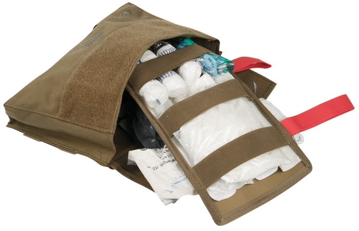 Tasmanian Tiger First Aid Kit with DeepL access system. The panel with loops that can be individually equipped can be pulled out with a handle.