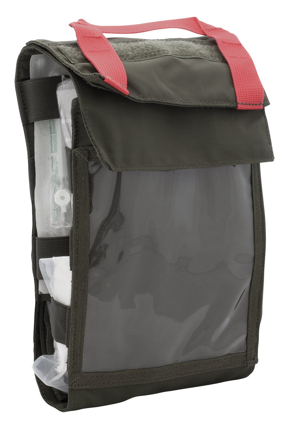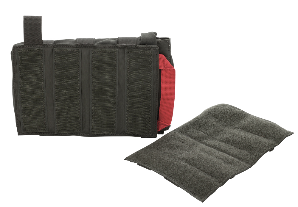 First Aid Kit for mounting on MOLLE Velcro. The Tasmanian Tiger IFAK Pouch VL L is hooked Velcro for easy attachment and can thus be mounted directly on Velcro flaps, e.g. the TT Modular Front Seat Panel. It features a MOLLE hook and loop adapter. The IFAK kit is pulled out on one side.