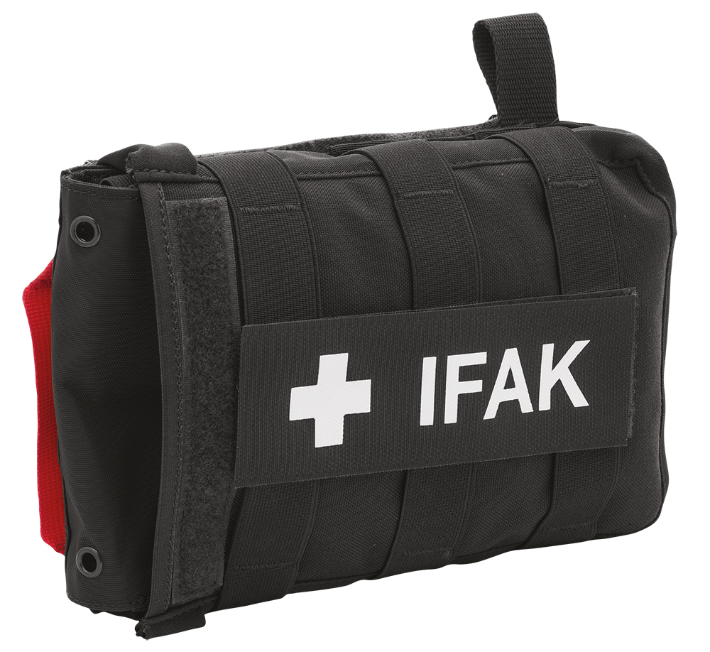 First Aid Kit for mounting on MOLLE Velcro. The Tasmanian Tiger IFAK Pouch VL L is hooked Velcro for easy attachment and can thus be mounted directly on Velcro flaps, e.g. the TT Modular Front Seat Panel. It features a MOLLE hook and loop adapter. The IFAK kit is pulled out on one side
