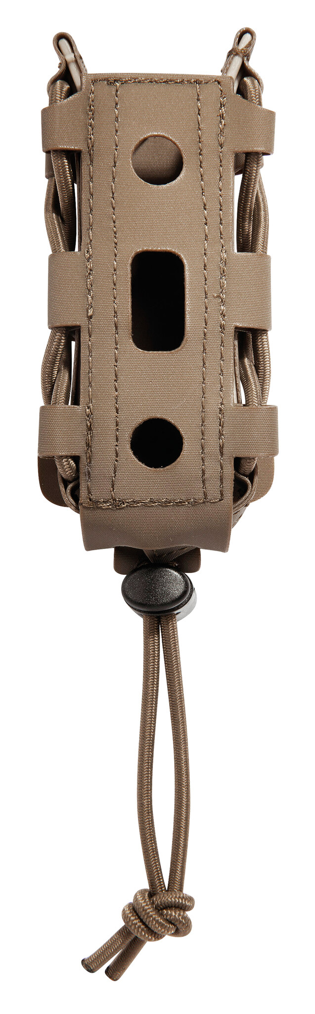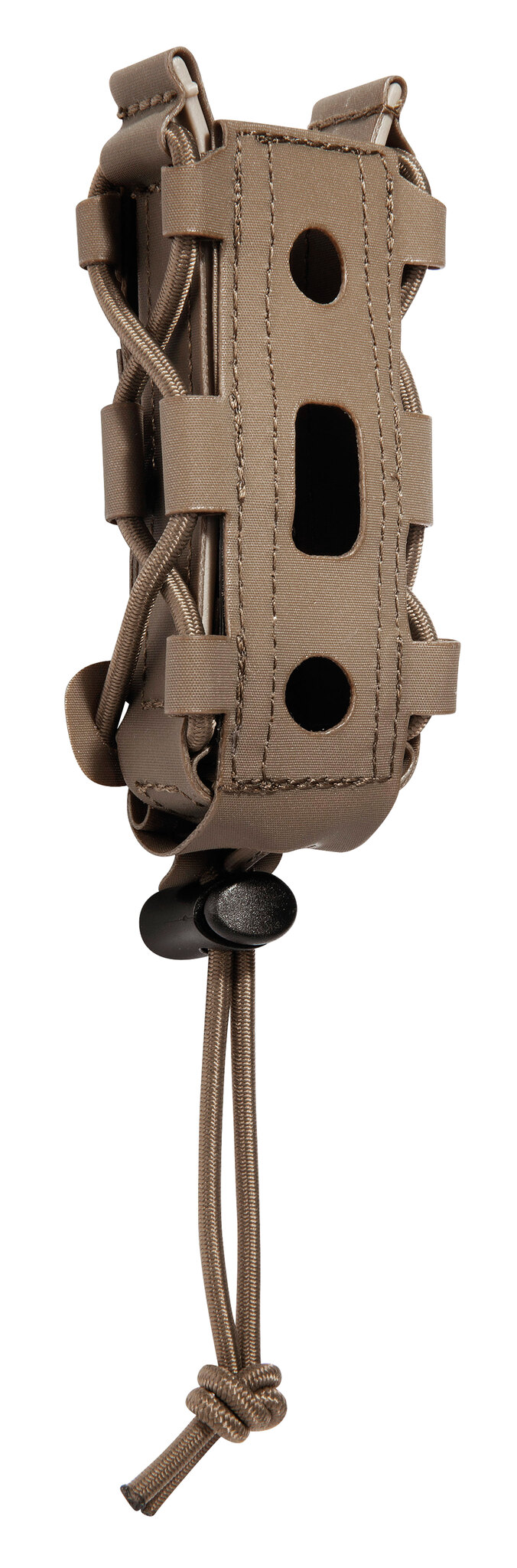 The SGL Pistol Mag Pouch MCL Anfibia single magazine pouch is suitable for all common double row pistol magazines. The magazine pouch is equipped with a cord stopper and adjustable bungee cord to fix and stabilize the magazine. Thanks to the M.O.L.L.E reverse system, the Tasmanian Tiger Magazine Pouch SGL Pistol Mag Pouch MCL can be attached to the belt or plate carrier, 2 M.O.L.L.E loops are required. The skeleton design of the Mag Pouch allows M.O.L.L.E attachment for optional attachment of additional magazine pouches.