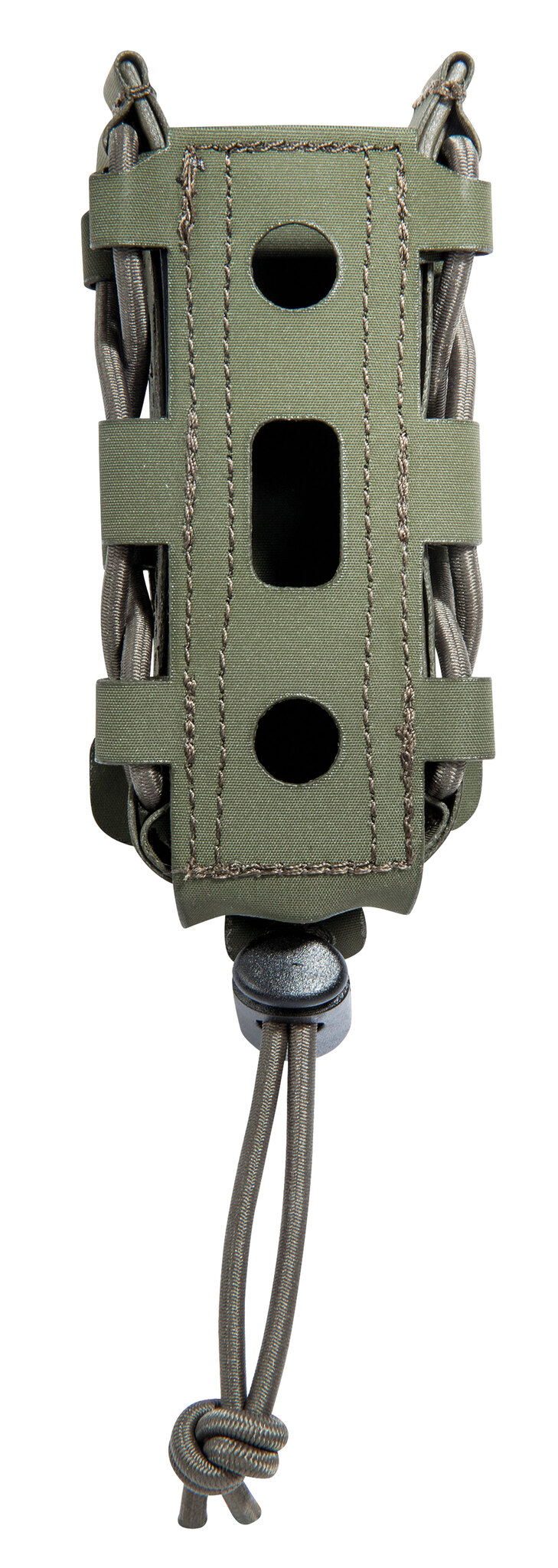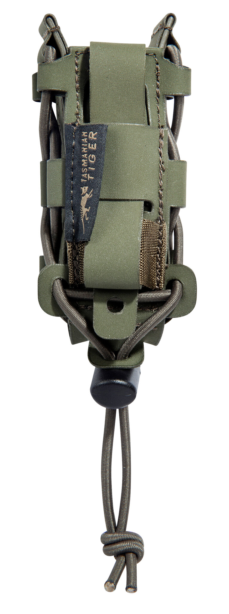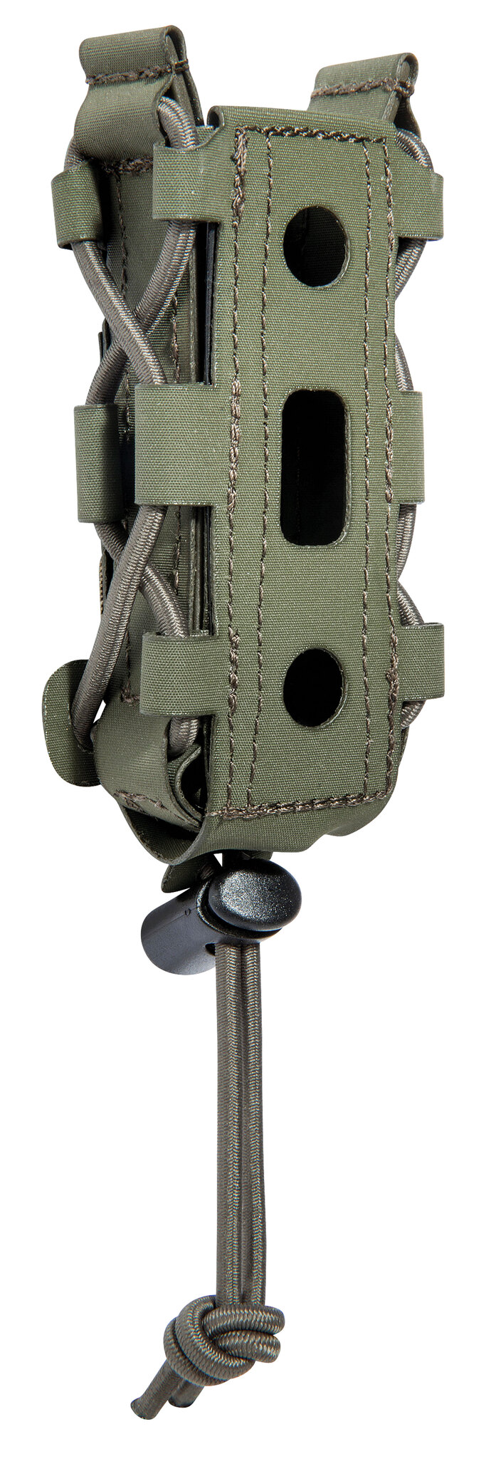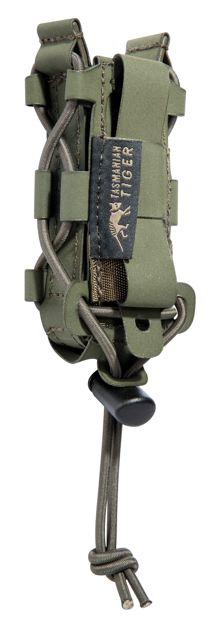 The SGL Pistol Mag Pouch MCL Anfibia single magazine pouch is suitable for all common double row pistol magazines. The magazine pouch is equipped with a cord stopper and adjustable bungee cord to fix and stabilize the magazine. Thanks to the M.O.L.L.E reverse system, the Tasmanian Tiger Magazine Pouch SGL Pistol Mag Pouch MCL can be attached to the belt or plate carrier, 2 M.O.L.L.E loops are required. The skeleton design of the Mag Pouch allows M.O.L.L.E attachment for optional attachment of additional magazine pouches.