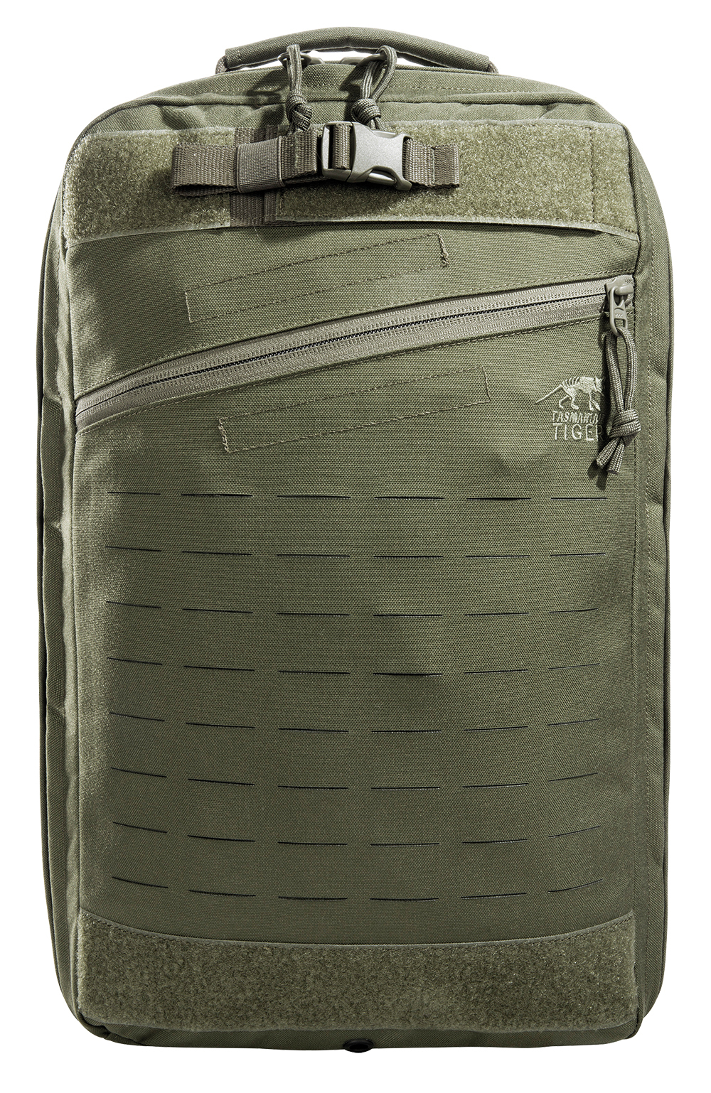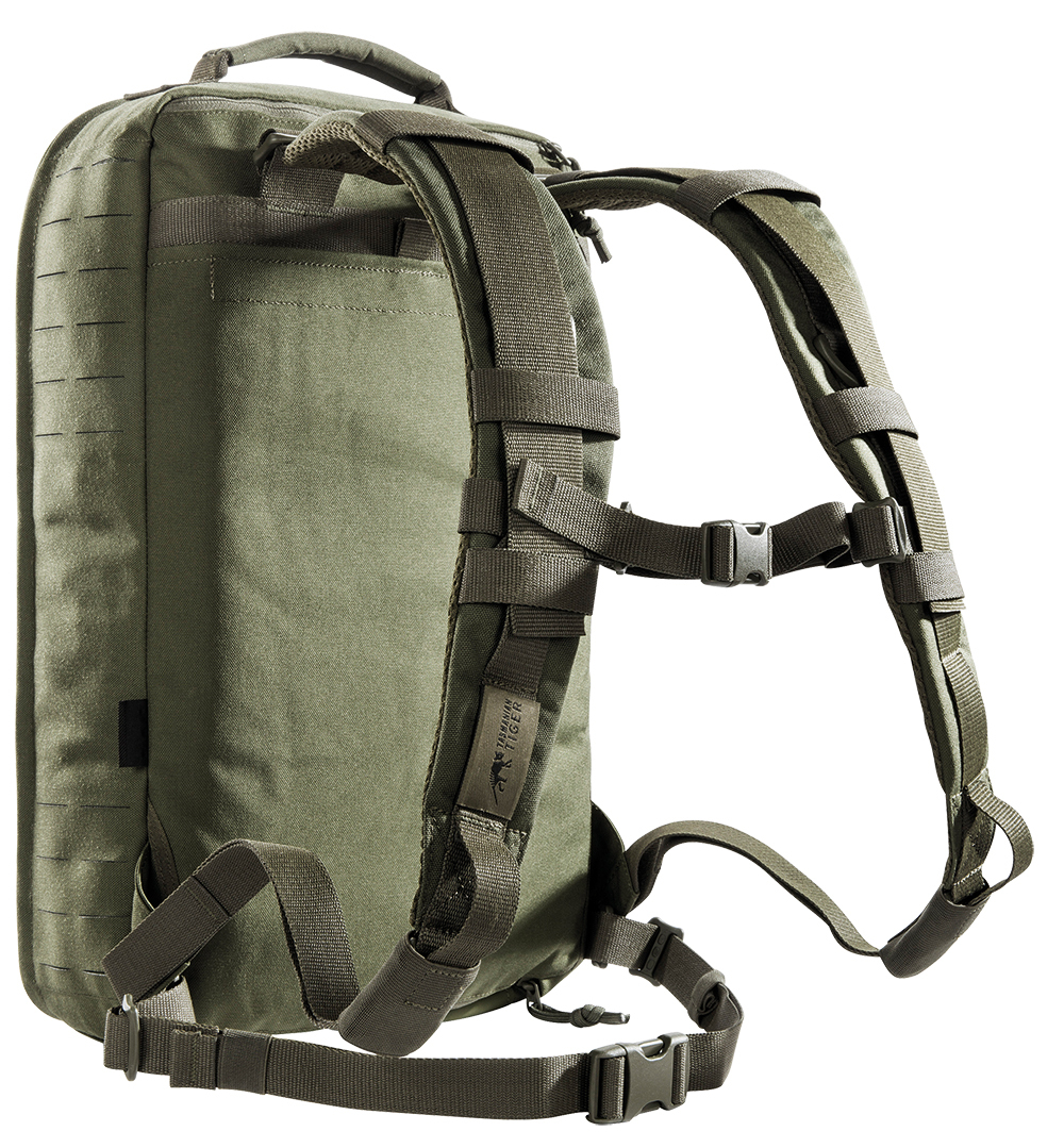 Larger Medic backpack with intelligent, clearly arranged interior. The Medic Assault Pack MK II L offers the third size of the proven Medic backpack from Tasmanian Tiger. The backpack is about 4 cm (one Molle strip) deeper than the two smaller models. The MOLLE system on the front and sides is laser cut. On the bottom there is a fixation possibility for a rescue blanket. The lightweight, padded shoulder straps can be removed and stowed in a pocket with Velcro closure on the back. The backpack can be adapted to plate carriers and vests using the appropriate webbing provided. Stowable carrying handles serve for quick transport in case of emergency.