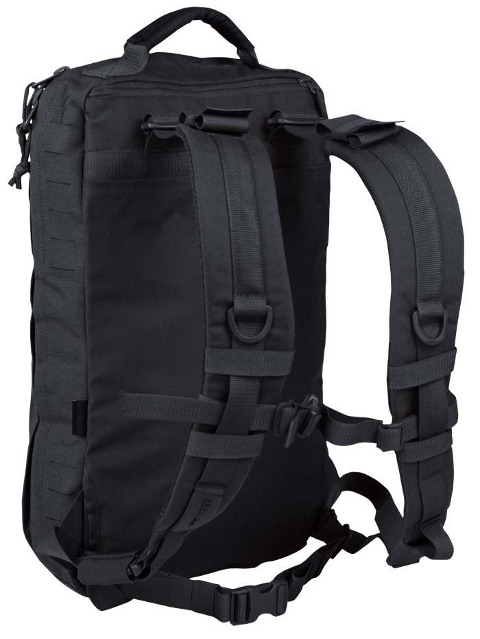 Size-adjustable shoulder straps with chest strap, also allow carrying over heavy protective vests