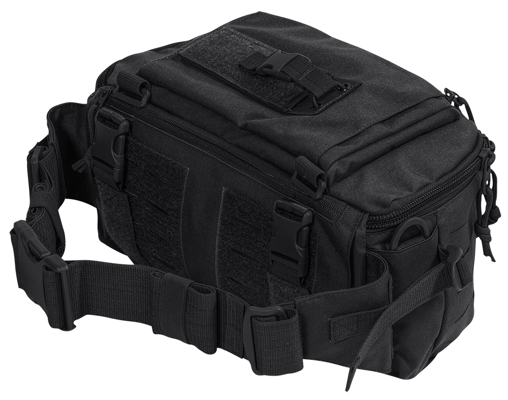 velcro. The hip belt can be removed, which allows the bag to be worn as a shoulder bag. With the help of special adapters, the bag can also be attached to plate carriers.