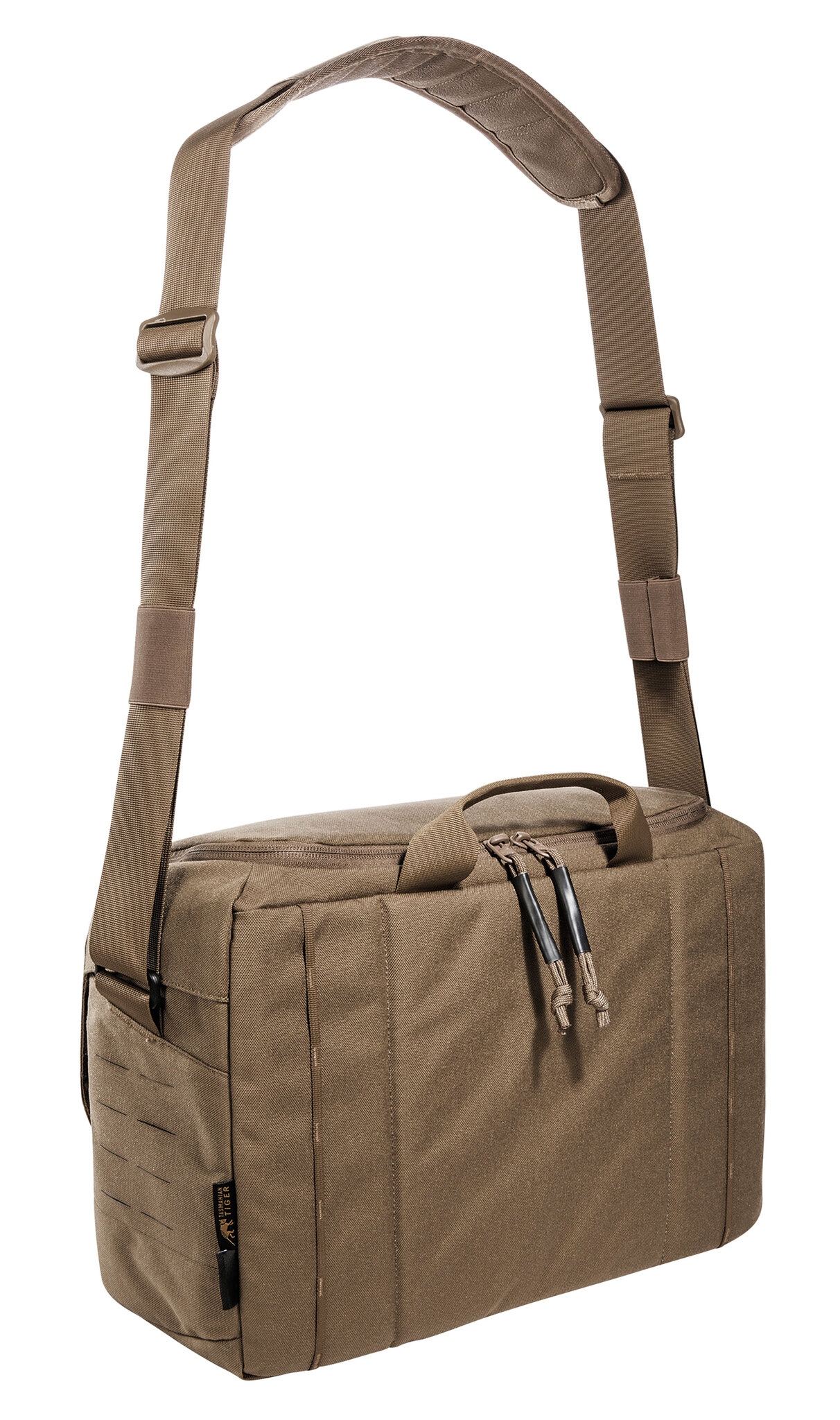 All around padded shoulder bag. The Tasmanian Tiger Modular Equipment Case is internally covered with a large MOLLE Velcro area and equipped with flexible-use padded dividers. The separate, width-adjustable laptop compartment can also be used as a weapons compartment. The flap is secured with Velcro and quick-release buckles. Extra zipper allows quick access from the top.