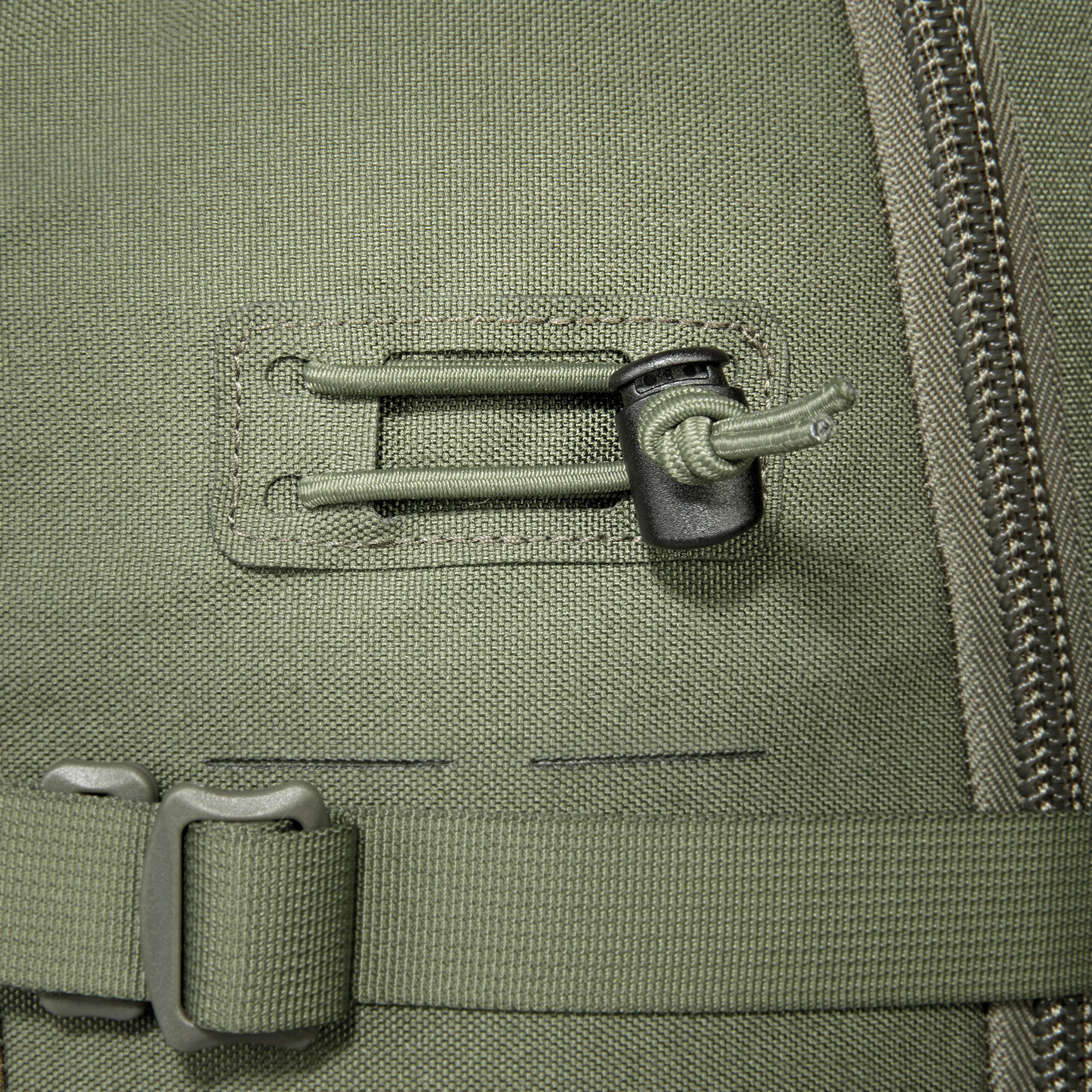The main compartment of the Tasmanian Tiger Modular Tac Pack 28 has a flat zip pocket on the front - pocket for quickly accessible small parts or documents. The front of the Tasmanian Tiger Modular Tac Pack 28 can be completely opened thanks to a circumferential zipper, for more clarity and better organization. On the inside of the front are 3 flat mesh pockets with zipper , and four mesh pockets on the inside of the backpack (2 per side) + a M.O.L.L.E Velcro area. The laser-cut M.O.L.L.E areas on the sides and front of the Modular Tac Pack 28 can be perfectly used to attach additional accessory pockets. The two vertical circumferential compression straps on the front are removable and can be used for volume adjustment. The Tasmanian Tiger Modular Tac Pack 28 comes with a removable hip belt made of simple webbing, but you have the option to equip your backpack with a Hip Belt and upgrade the carrying comfort, thus turning the Modular Tac Pack 28 from Tasmanian Tiger into a backpack for heavy loads. The bungee cord supplied by Tasmanian Tiger offers them the possibility to stow at their backpack easily and quickly hiking poles, tripods or even the rain jacket. At the bottom of the Tasmanian Tiger Modular Tac Pack 28 they have the possibility to attach two compression straps (included) for additional gear such as tarp, sleeping pad, etc.