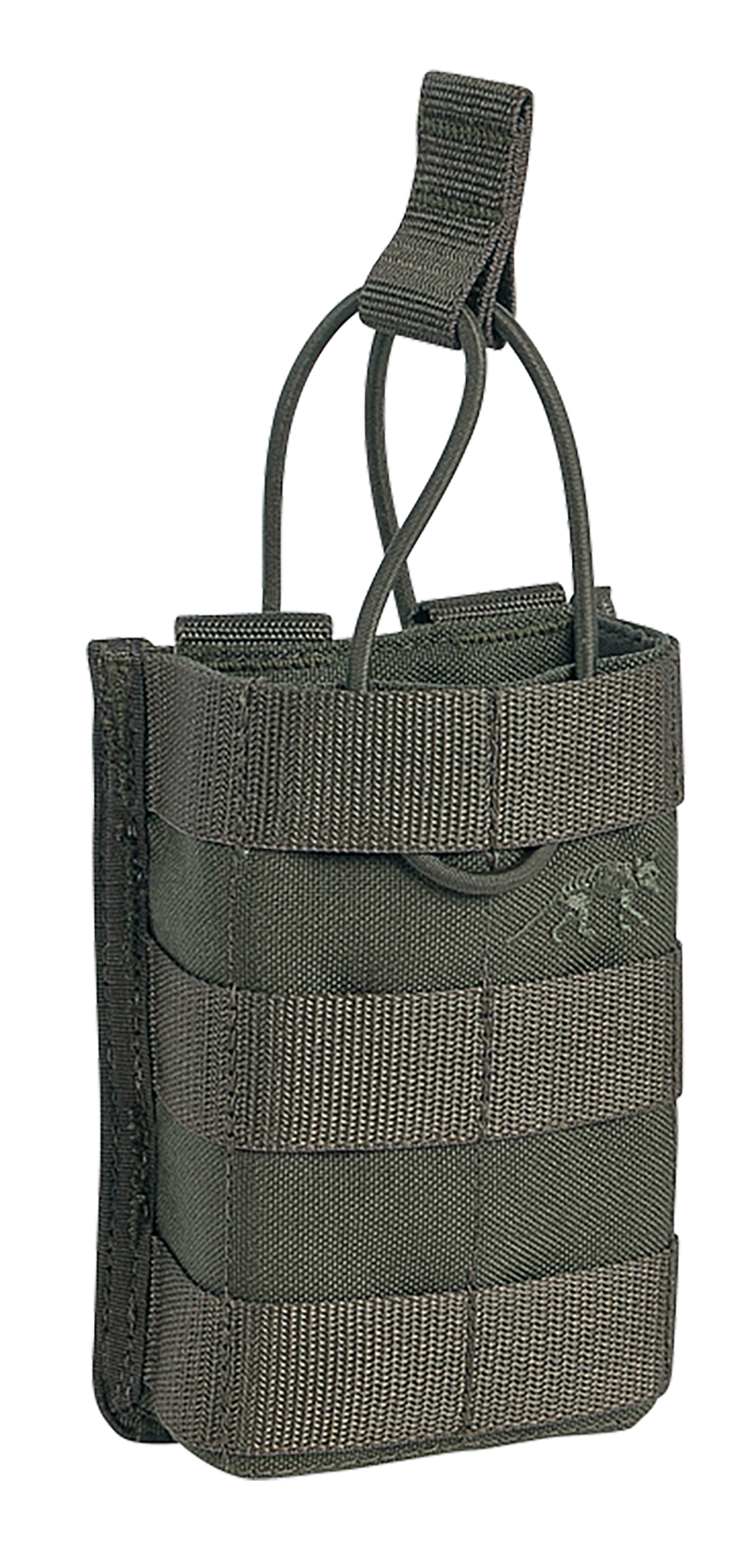 The Tasmanian Tiger SGL Mag Pouch BEL G36 MKII is a short magazine pouch designed to hold one H&K G36 magazine, secured by bungee cord. The pouch is secured using the silent and robust MOLLE reverse system made of Hypalon. The Cordura material and webbing are EU made and TL8305-0278/I1 and TL8305-0281 IRR safe rated (IRR 650 - 1250nm / 10 - 42%). The Mil-Spec buckles are also IRR safe equipped (IRR 650 - 1250nm / 13 - 36%).