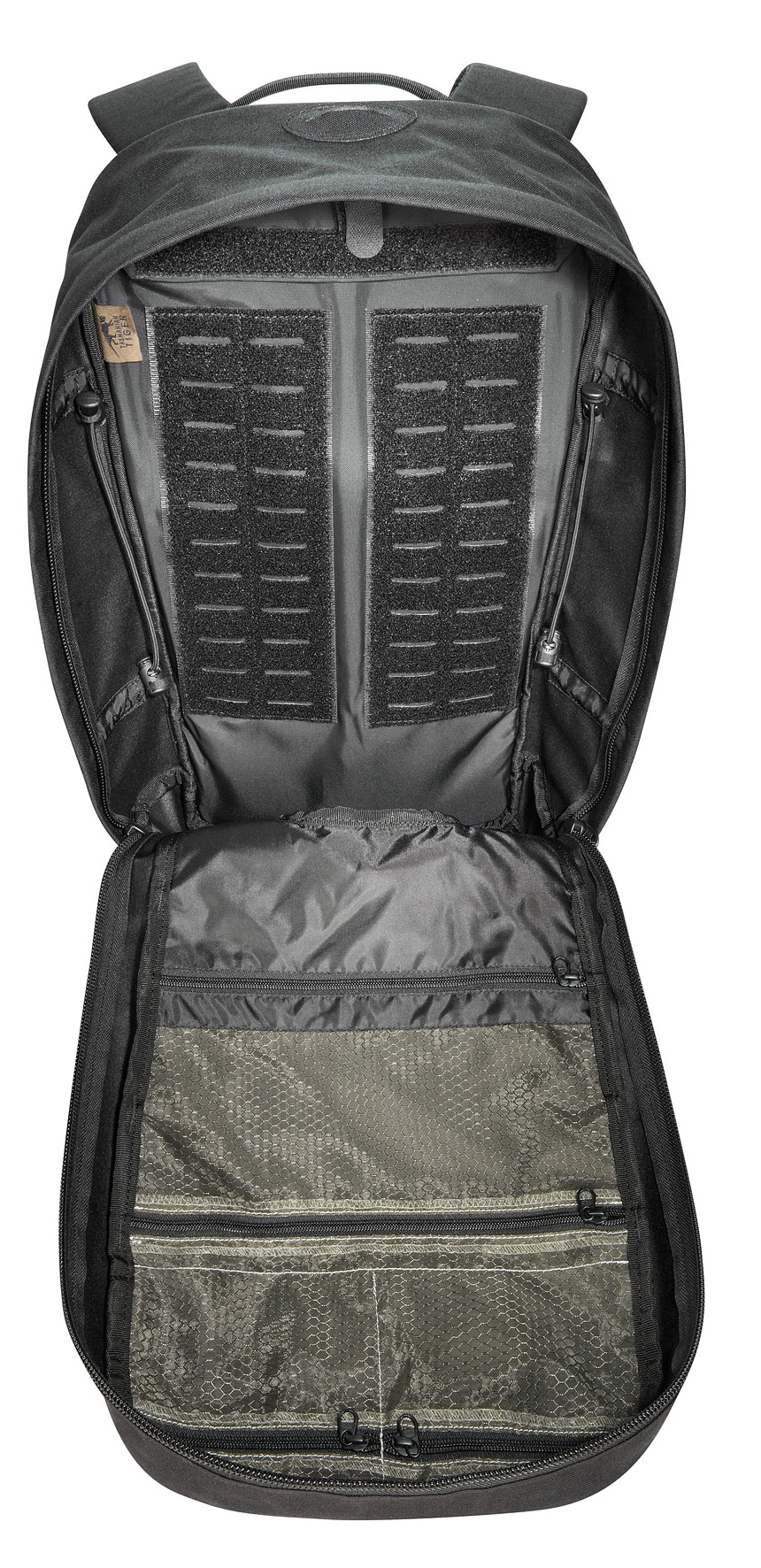 Unobtrusive daypack with modular uses. The TT Urban Daypack 22 has an inconspicuous appearance and is thus also suitable for a more civilian environment. The main compartment, which can be completely pulled open, is covered with MOLLE Velcro and can thus be equipped in a modular manner. Clear mesh zippered pockets in the main compartment and a front compartment with side access provide further organization options. Ergonomically shaped shoulder straps and a padded back with removable back panel beteten a comfortable carry.