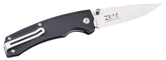 The Tekut ZERO is a small and lightweight EDC folding knife with removable thumb studs, 12C27 Sandvik steel blade and G10 handle scales