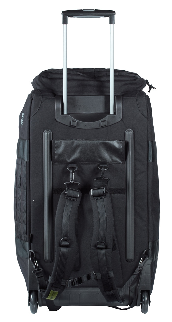 Large-volume insert bag with 110 liter capacity and extendable aluminum telescopic handle and smooth-running wheels for easy and energy-saving transport. Toll loops on the sides allow individual expansion of the transporter.