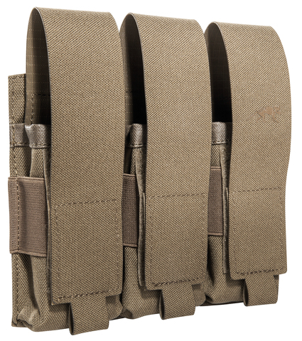 Magazine pouch for 3 x MP7 magazines with Velcro surface on the back for clipping onto plate carriers or for clipping into backpacks.