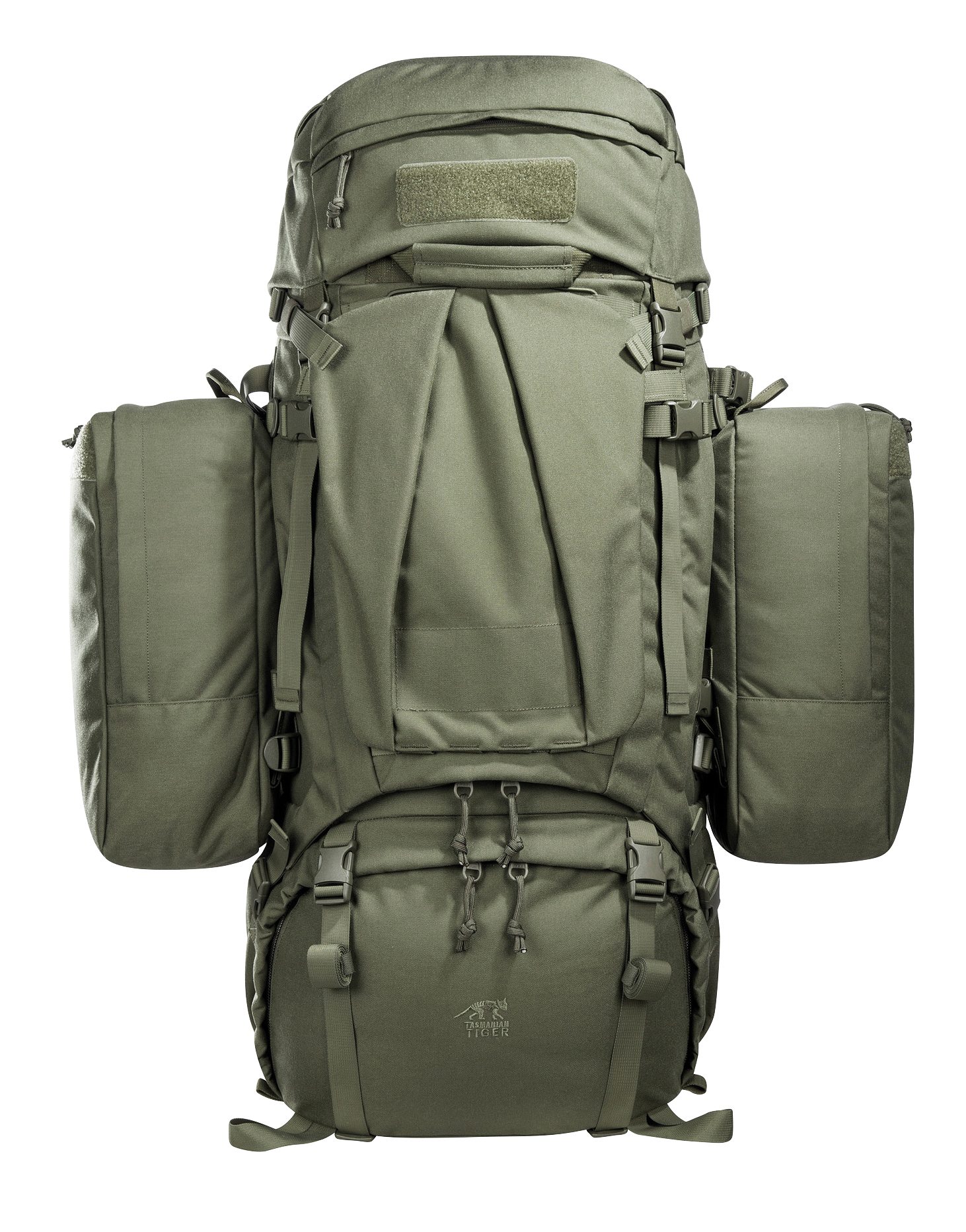 The TT Mil OPS Pack 80+24 leaves nothing to be desired from a large mission backpack. MOLLE loops on the front, sides and lid offer full modularity. The large main compartment has a hydration preparation and equipment holder for PRC 117, TRM 6020/21 or SEM 70 and cable / hose openings on the sides. The main compartment can be accessed and loaded from the top, front and through the bottom compartment. The height-adjustable lid allows the main compartment to be extended to the top. Furthermore, the TT Mil OPS Pack 80+24 offers two removable side pockets with 12 liters volume each, two side pockets, a removable helmet holder and three lid pockets.