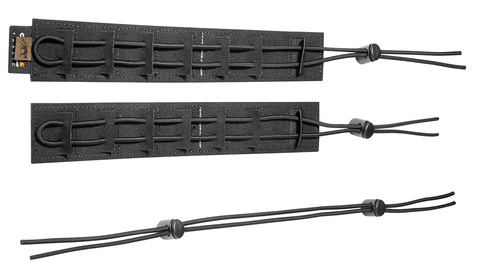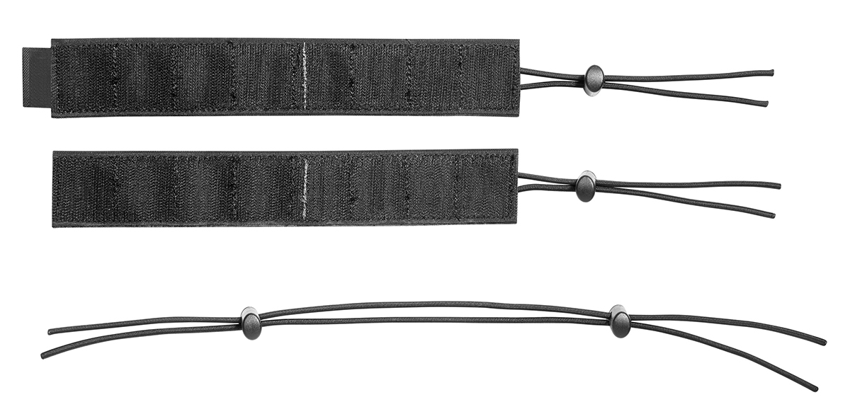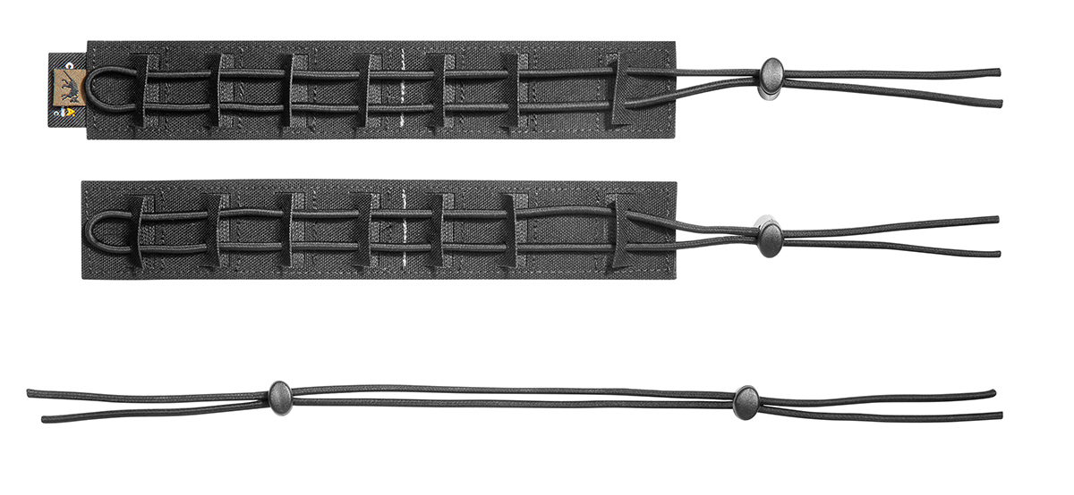 Flat bungee cord functional bar for e.g. small Medic parts with Velcro back. The strip can be flexibly velcroed into modular TT Medic Packs or attached to Velcro panels.