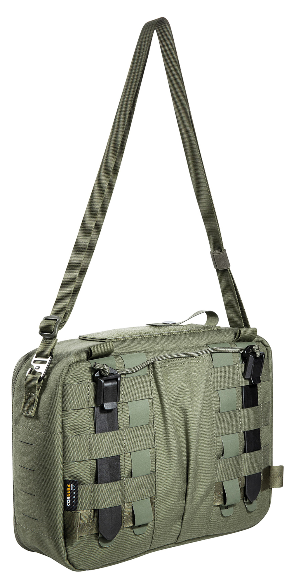 The TT Modular Support Bag is a padded shoulder bag with MOLLE Velcro and bungee cord on the inside for individual equipment and laser cut MOLLE on the front and sides. Incl. detachable, stowable shoulder strap and MOLLE sticks as quick release system for plate carriers or backpacks.