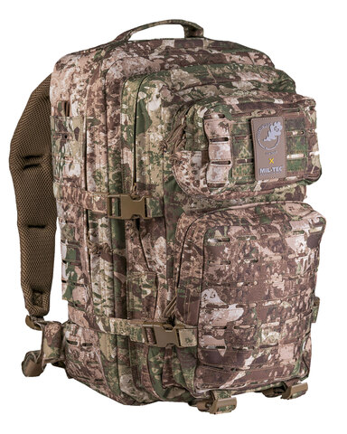 Extremely robust, modular backpack made of polyester, which you can equip according to your preferences: Laser-cut MOLLE tabs are incorporated in the front and sides. The three different Phantomleaf WASP I CIV-TEC camouflage patterns were developed exclusively for Mil-Tec and is completely camouflaged except for the zipper, plastic parts and mesh ventilation.