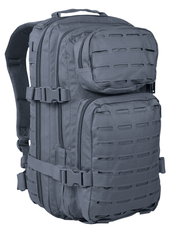 The US Assault Pack from Mil-Tec with Laser Cut Molle admission has with about 36 liters volume all the features of a small to medium-sized backpack. Due to the new Laser-Cut Molle mounting system, the backpack is approx. 200 grams lighter than the standard version of the backpack. In addition to the weight savings, unwanted snagging as with a normal sewn-on webbing molle loop is virtually eliminated and much more durable. Faster and easier attachment of equipment is a given.