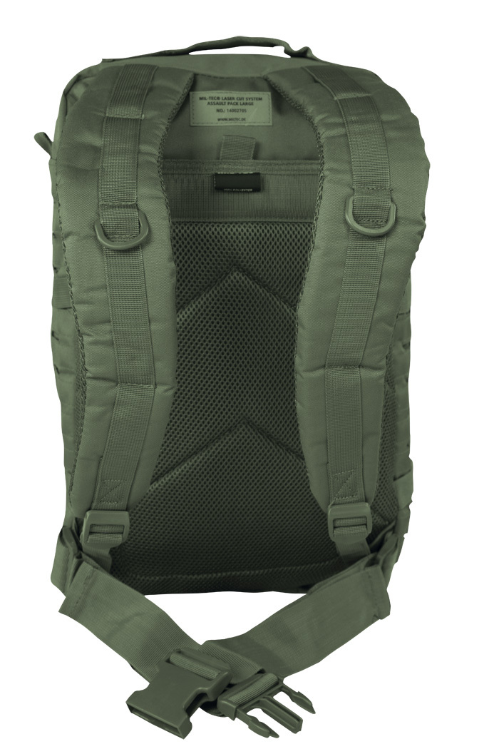The US Assault Pack from Mil-Tec with Laser Cut Molle mount has all the features of a small to medium sized backpack with about 36 liters of volume.