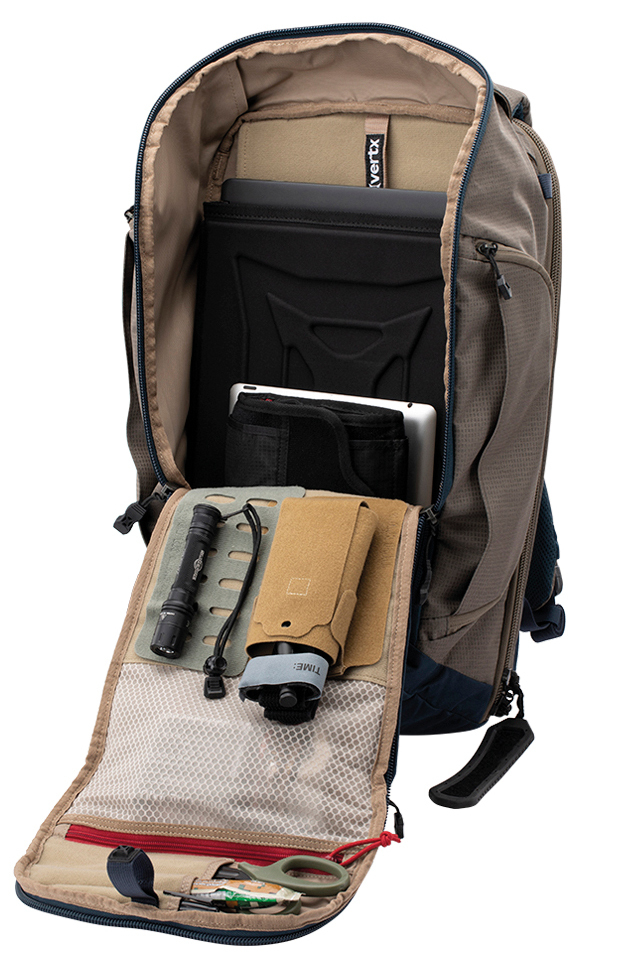 The slim design of the Vertx Gamut Checkpoint Packand its unassuming exterior conceal the capabilities of this fully featured backpack with concealed weapons compartment. The focus is on efficiently organizing a wide range of gear that is easily accessible, yet protected by thoughtful design features. With the internal MOLLE panel and multiple Velcro panels, the configuration of essential gear can be customized to meet mission needs.