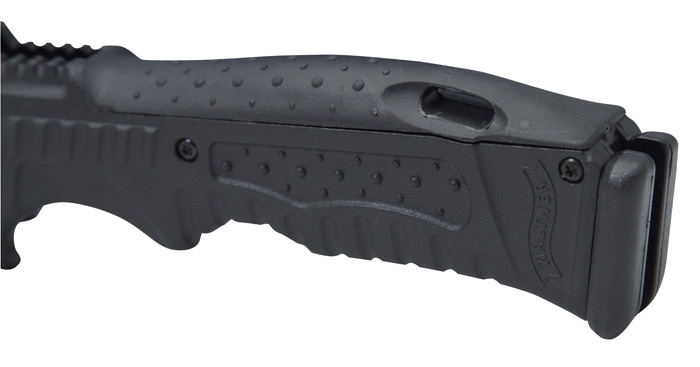 Here is the matching knife to the proven Walther P99 pistol with interchangeable grips. P 99 Knife can be adjusted to the desired hand size with three different sized plastic inserts. A reliable liner lock and a flipper, which serves both as an opening aid and as a parrying element, complete the equipment package of this unique knife.