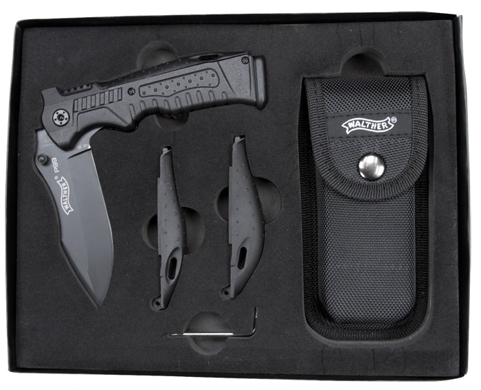 Walther P99 Knife with interchangeable back is a pocket knife set with a smooth blade and an overall length of 22cm.