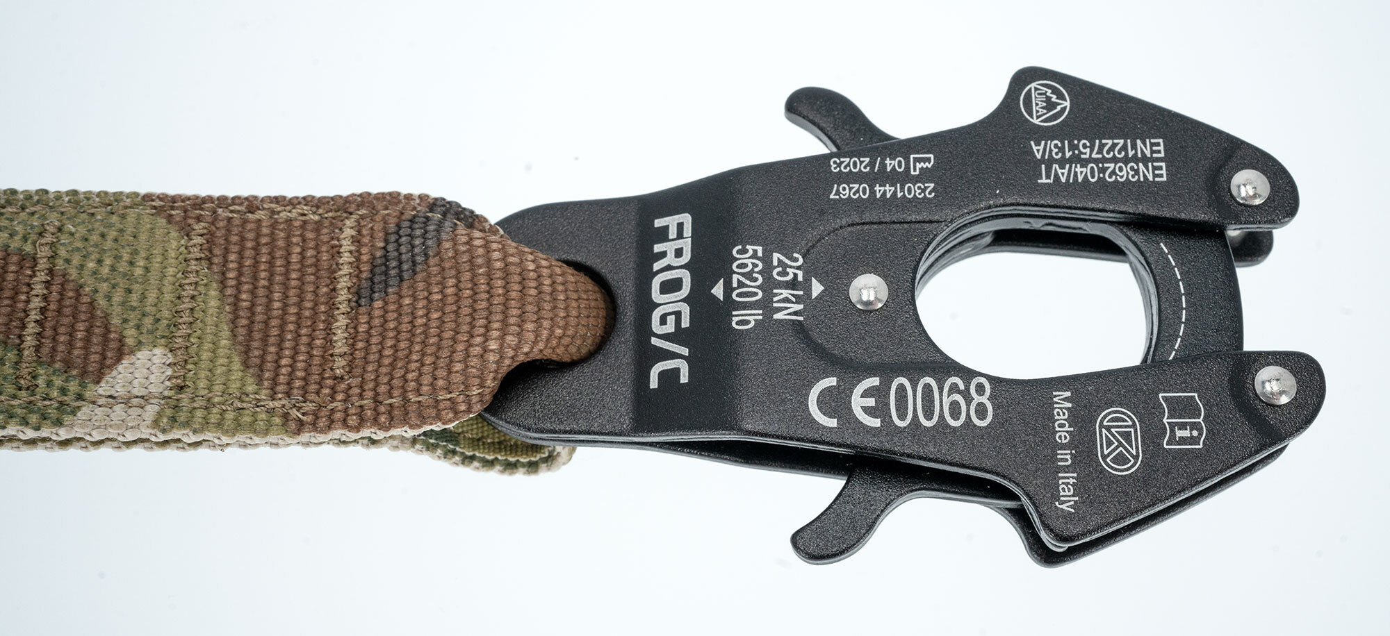 The FROG clip has a self-closing snap lock on contact with the anchor point.
