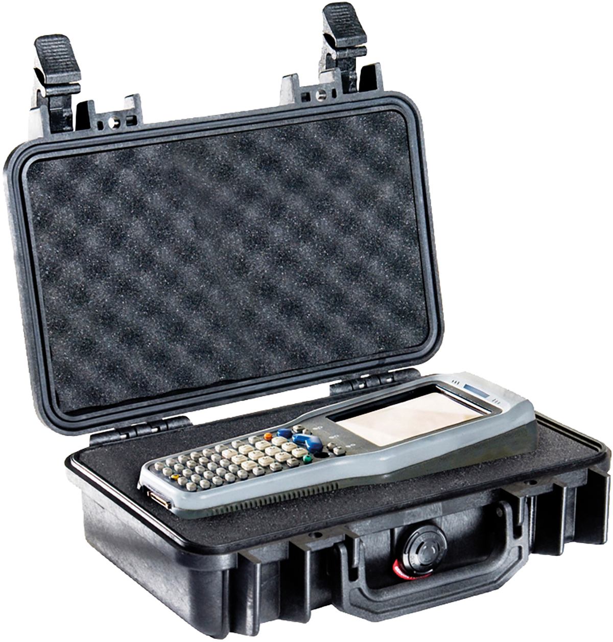 Waterproof, dustproof and virtually unbreakable Peli Box protective case with foam insert.