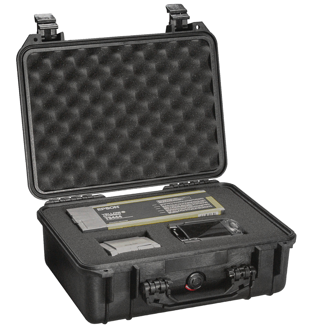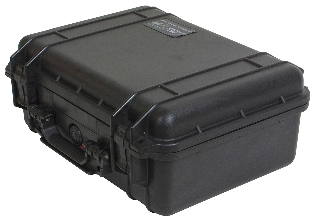 Waterproof, dustproof and virtually unbreakable Peli Box protective case with foam insert.