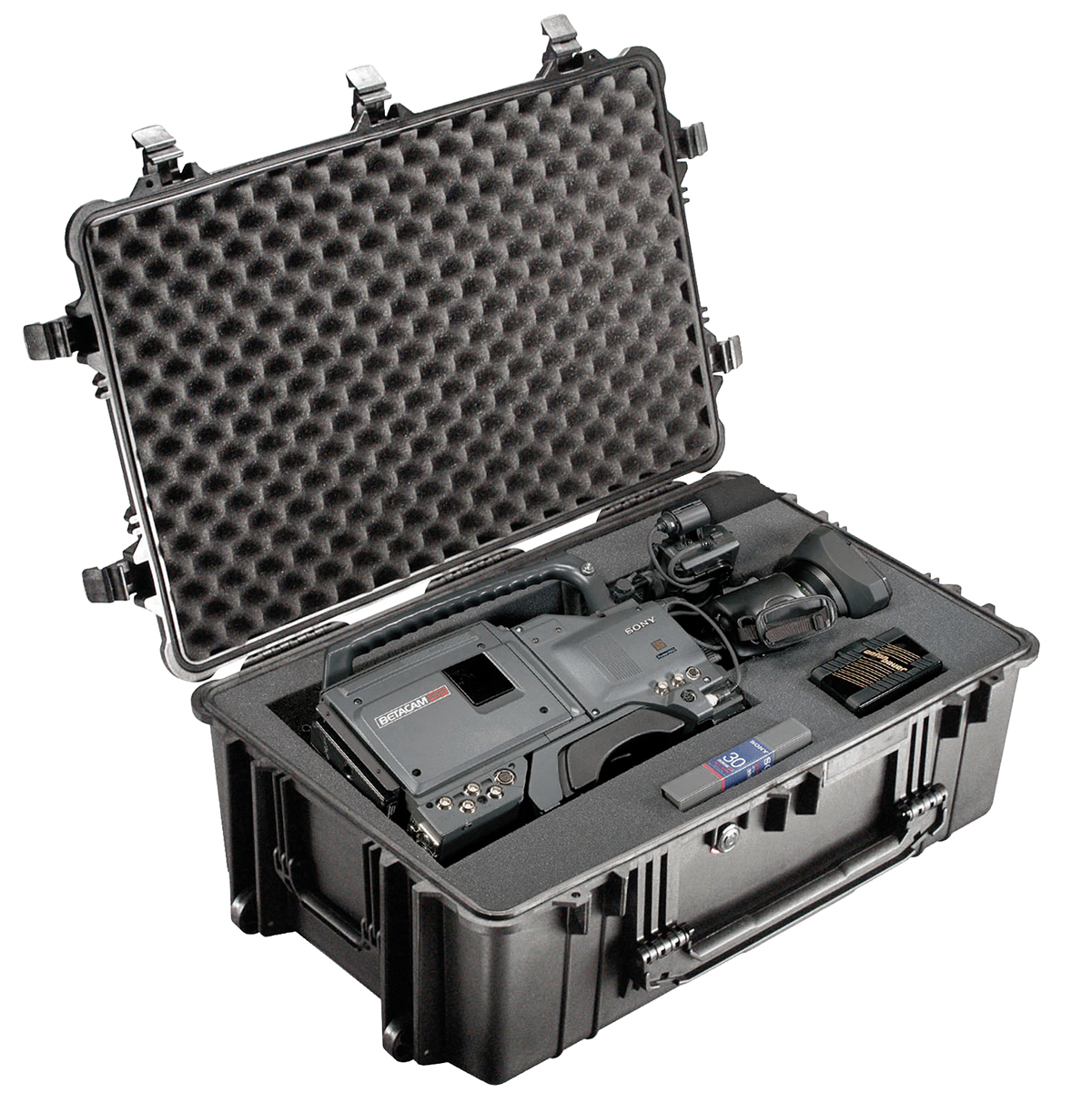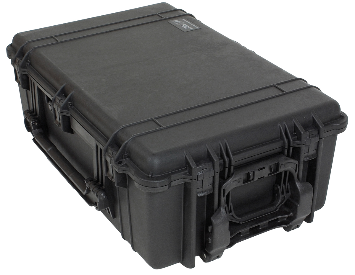 Waterproof, dustproof and virtually unbreakable Peli Box protective case with foam insert.