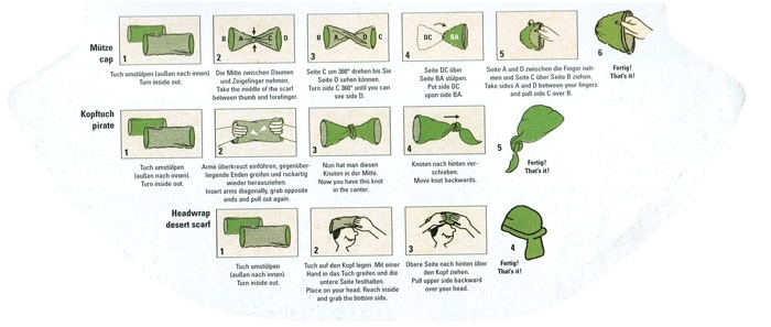 The pure cotton scarf is pre-sewn in head shape and is simply knotted at the back.