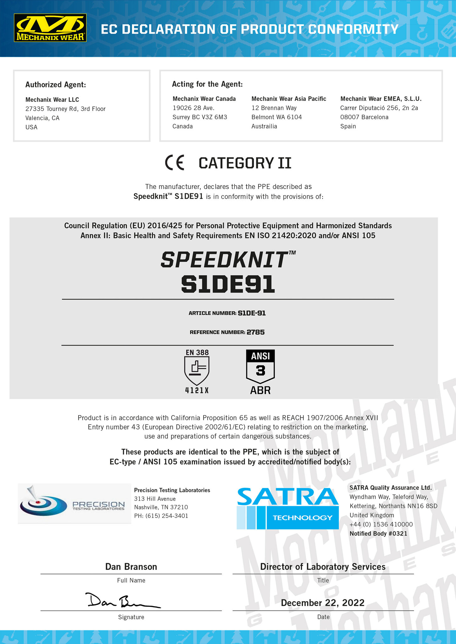 Performance level according to EN ISO 13997 TDM cut resistance: X