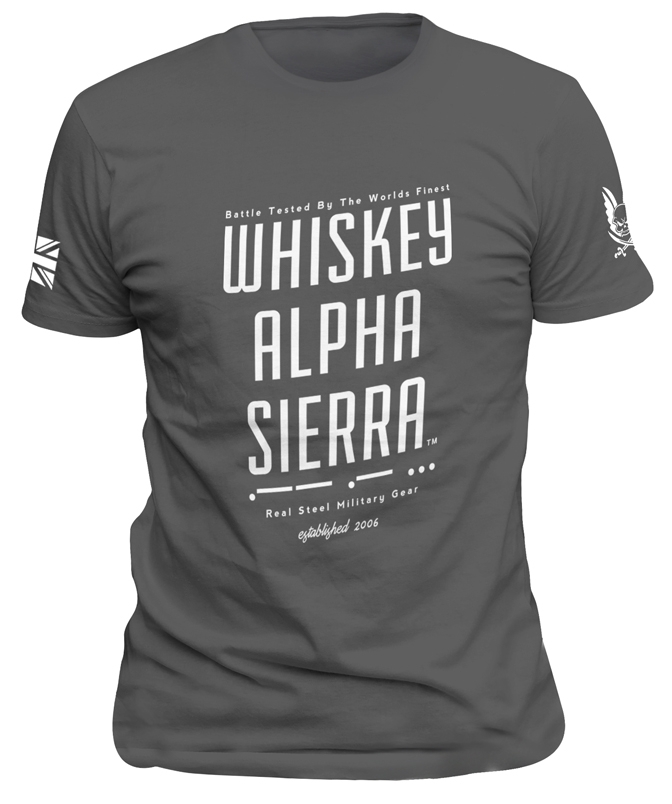 Whiskey Alpha Sierra T-Shirt from Warrior Assault Systems made of 100% cotton with premium print on the chest and sleeves.