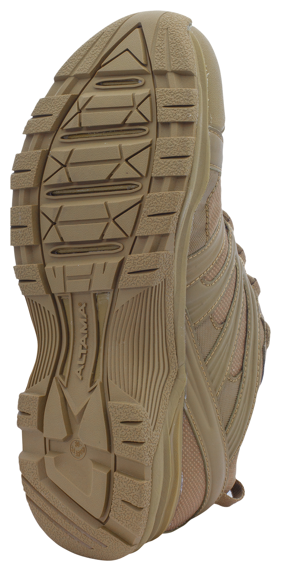 The Altama Aboottabad Trail Low is a rugged trail runner with tactical features, starting with the legendary Altama Panama Solen technology. The Rock 'n' Roll Plate™ outsole shape provides a comfortably light and fatigue-free roll, even over long distances. Additionally, the cushioning EVA midsole reduces stress on tendons, ligaments and joints. Altama Panama Soles Technology. With the special SOFROC™ rubber compound provides the best grip on wet and dry surfaces and optimal grip when rappelling.