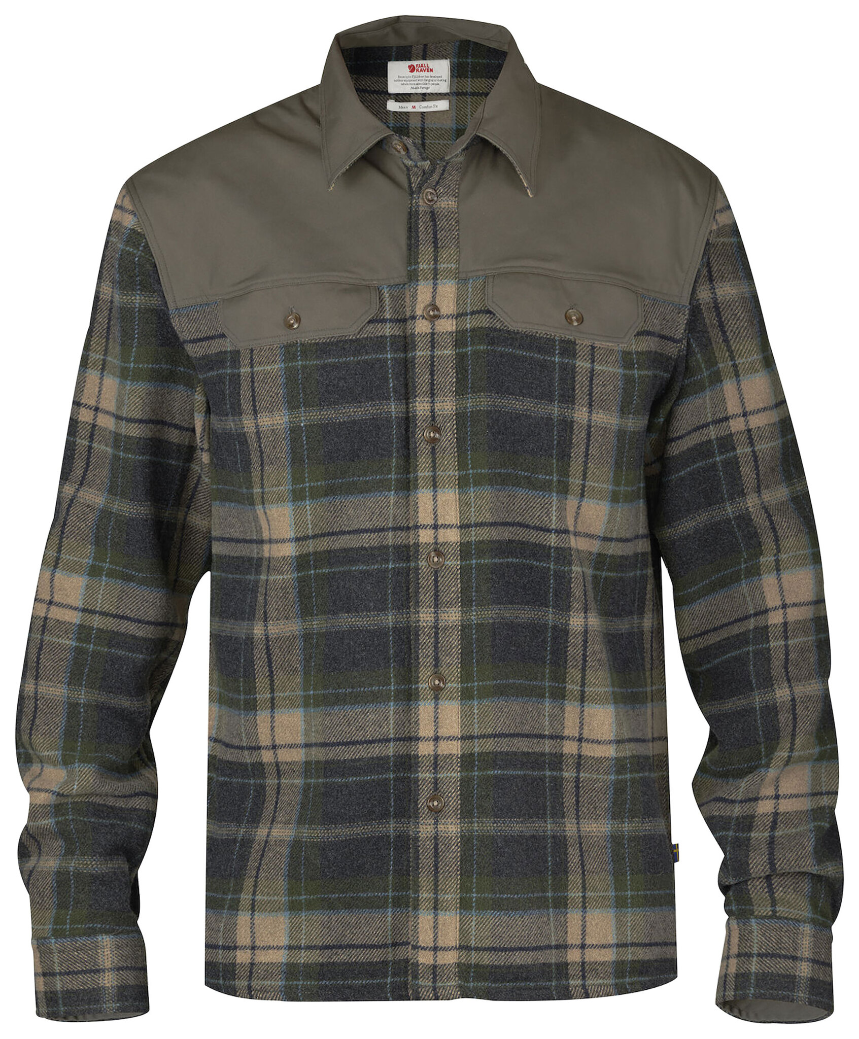 The Fjaellraeven Granit Shirt is a durable, warm lumberjack shirt in thick flannel woven wool blend with G-1000 reinforcements on shoulders and flaps.
