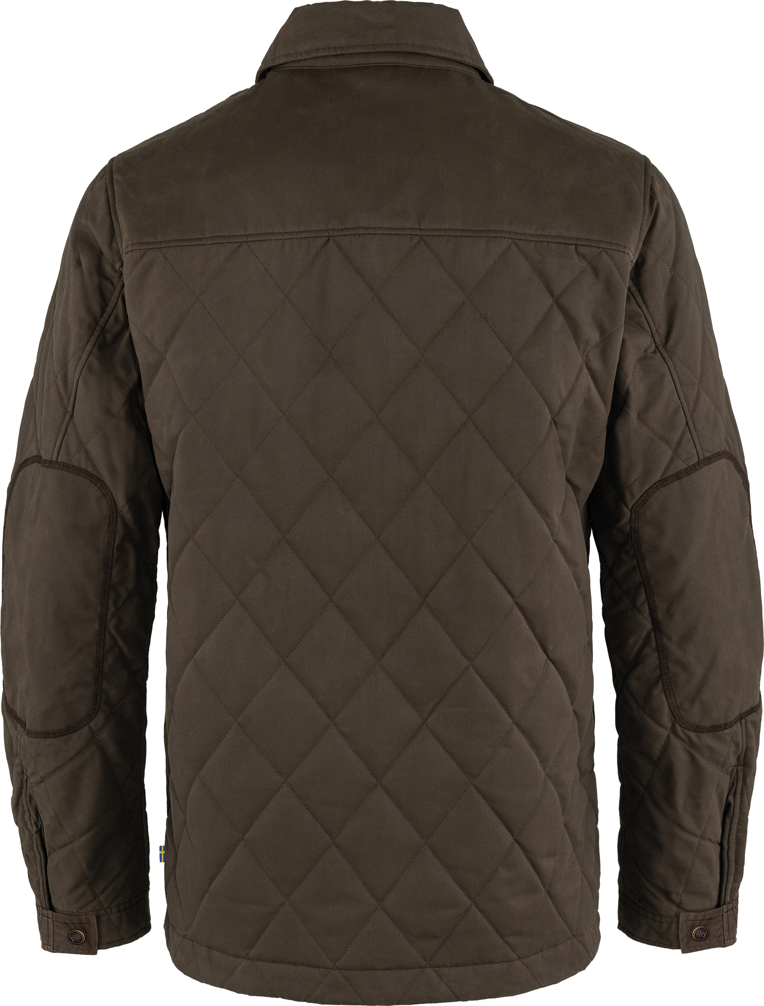 The is a padded jacket in quilted G-1000 Silent Eco with sustainable padding from Swedish wool. A timeless model that you can wear to work as well as for a walk in the woods or hunting. Reinforcements over the yoke and elbows for added durability. There are also several practical pockets. The collar can be turned up to protect you from cold wind, and it can be fixed with a button and a hidden flap.