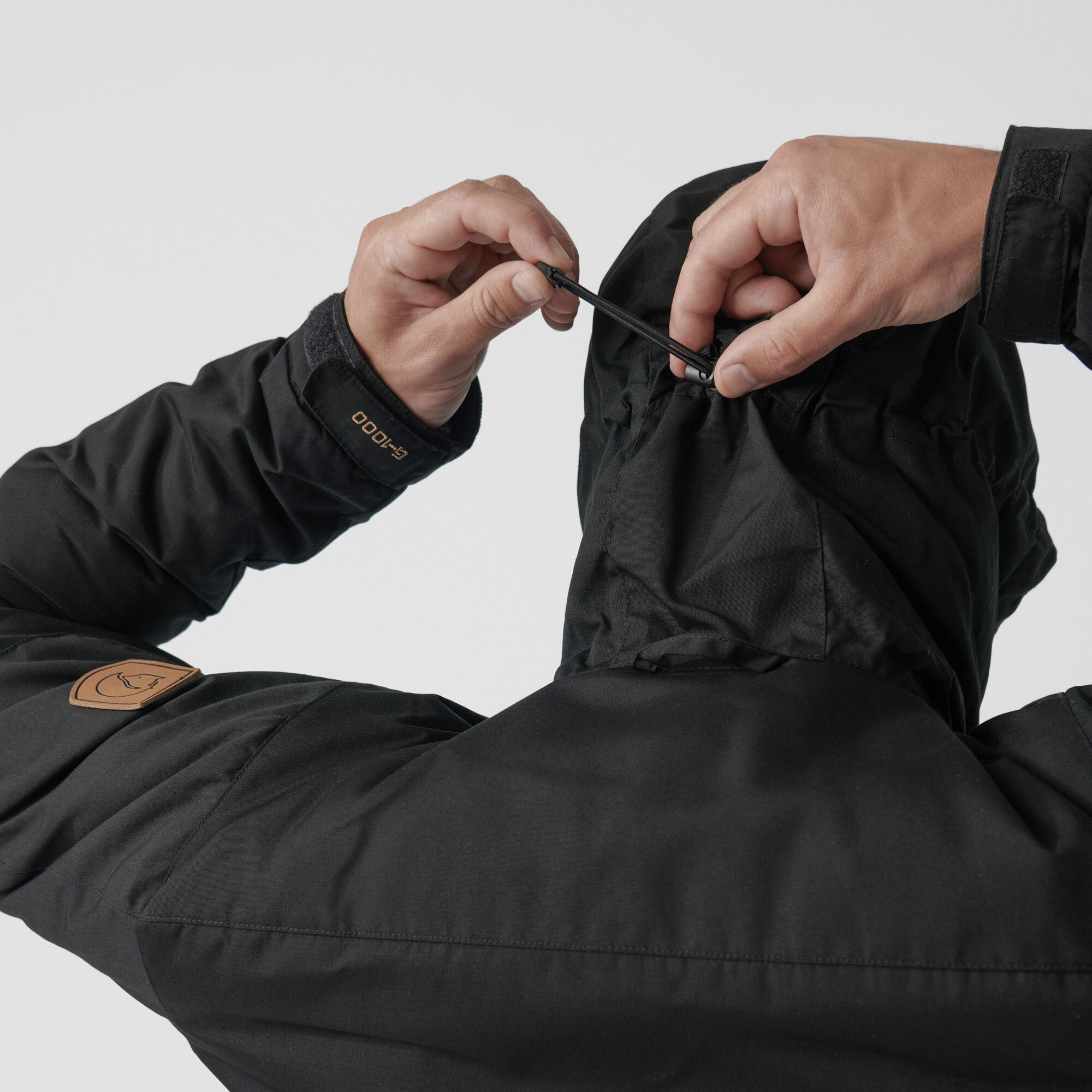 Close-fitting, adjustable hood.