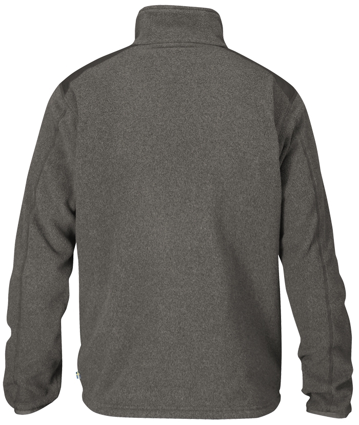 The fleece material of Fjaellraeven Sten is produced in an environmentally friendly process in which the threads are spun and dyed at the same time. As a result, this model uses approximately 50% less water and 32% less energy than a conventionally produced fleece jacket. Reinforcement of robust G-1000 in the shoulder area reduces friction under the shoulder straps of the backpack. High collar that protects against cutting wind, with protective flap of fleece between zipper and chin. Two spacious side pockets with zipper. All zipper slider handles made of natural colored leather. It can be worn under the outer jacket or alone