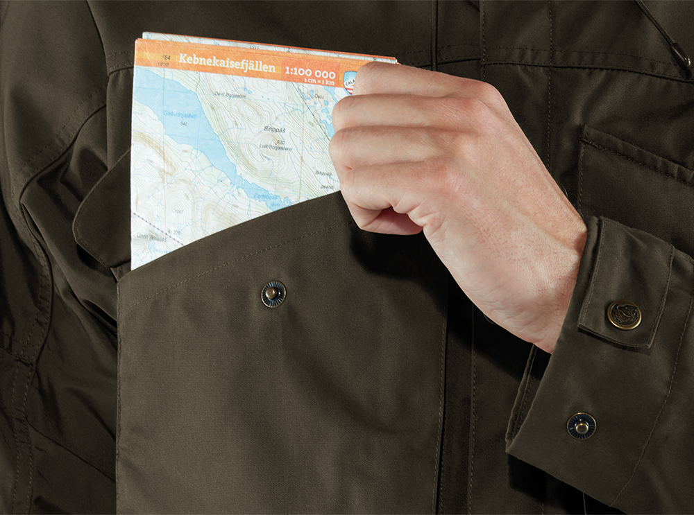 The Fjaellraeven Vidda Pro Jacket is made of wind- and water-repellent G-1000 Eco and has practical details such as eight spacious pockets and fastening loops.