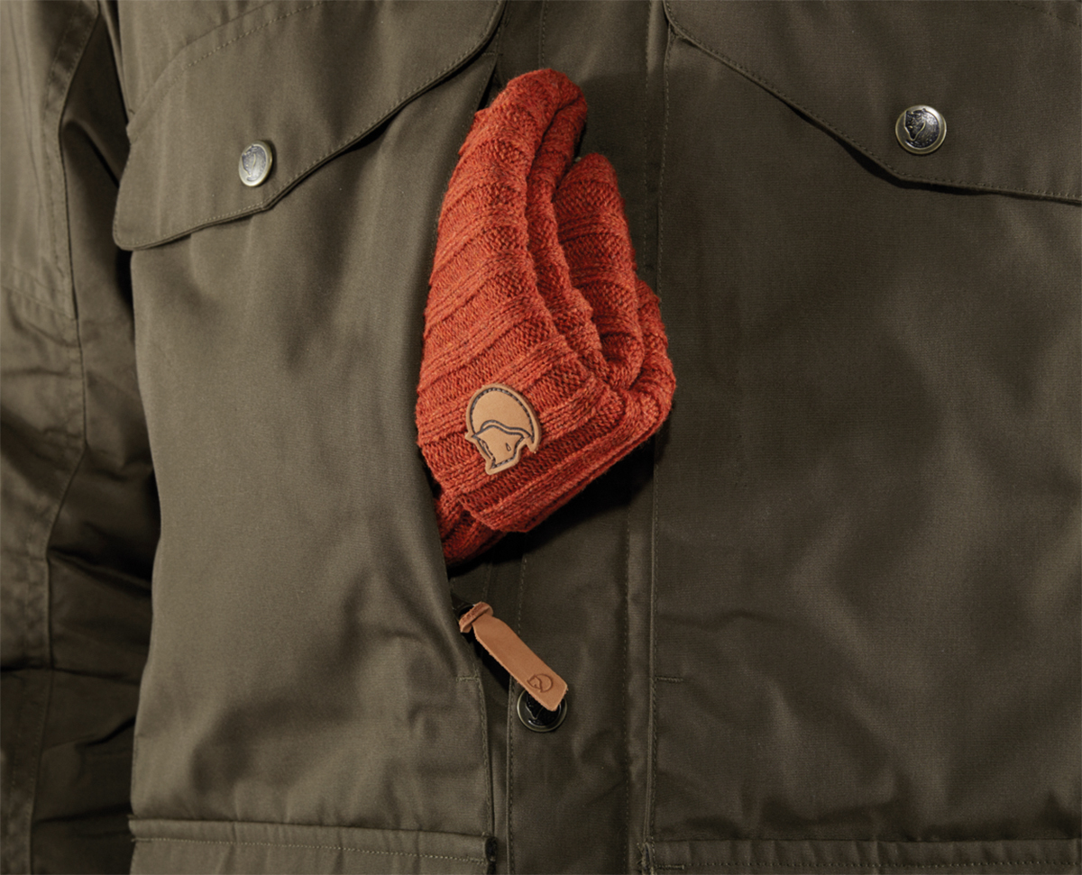 The Fjaellraeven Vidda Pro Wool Padded Jacket is a durable, warm jacket with robust details - perfect for hiking, bushcraft and demanding outdoor life in cold weather. Made of weatherproof G-1000 Eco and with sustainable lining of carefully selected Swedish wool and PLA - a bioplastic made from corn starch. Features a generous hood with warm lining in recycled wool. Eight pockets with plenty of room for everything you want to have at hand quickly