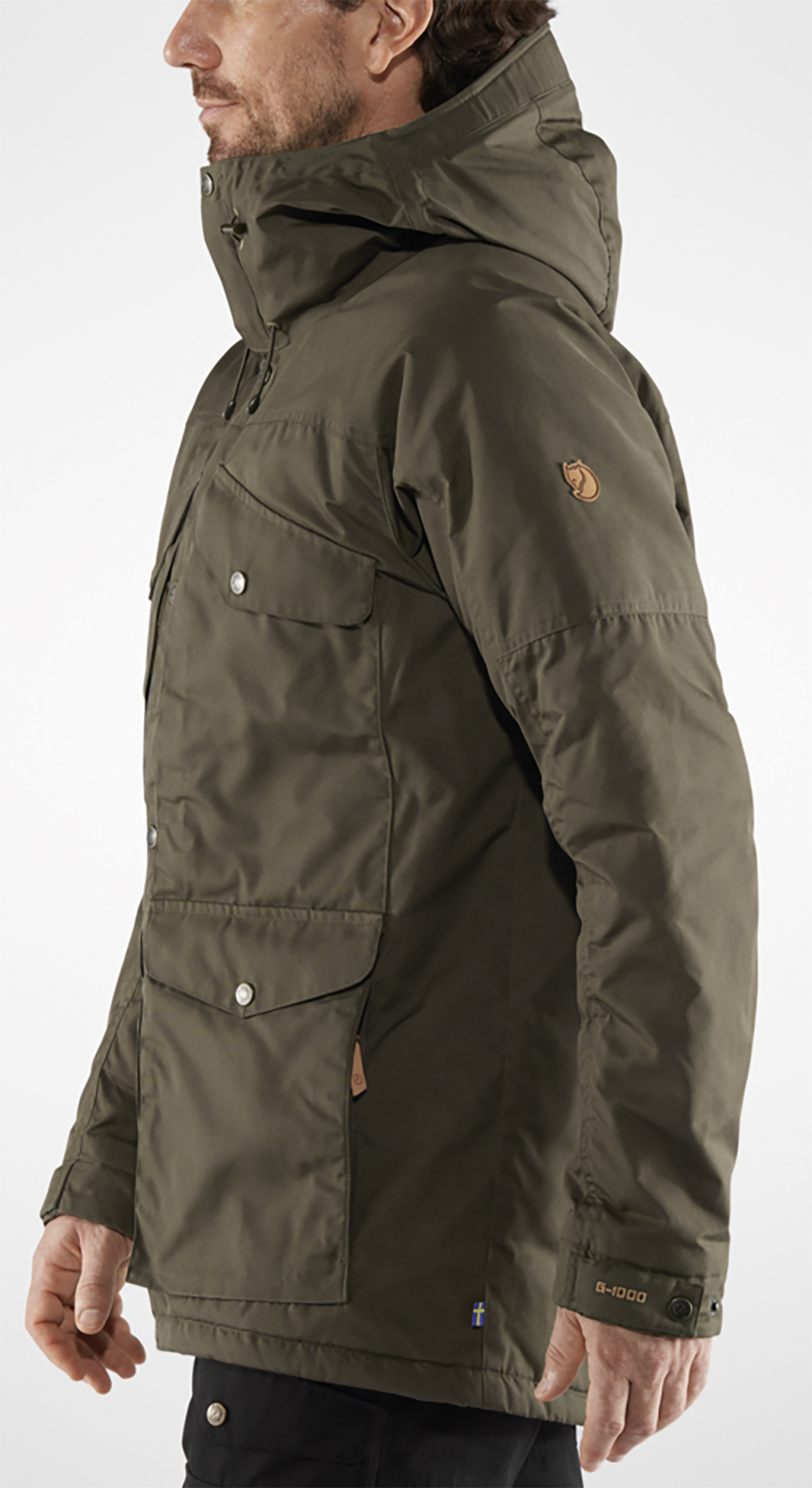 The Fjaellraeven Vidda Pro Wool Padded Jacket is a durable, warm jacket with robust details - perfect for hiking, bushcraft and demanding outdoor life in cold weather. Made of weatherproof G-1000 Eco and with sustainable lining of carefully selected Swedish wool and PLA - a bioplastic made from corn starch. Features a generous hood with warm lining in recycled wool. Eight pockets with plenty of room for everything you want to have at hand quickly