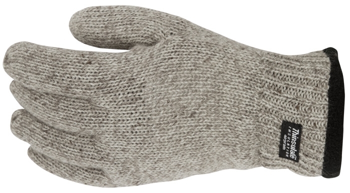 Knitted glove with warming fleece lining and Thinsulate padding.