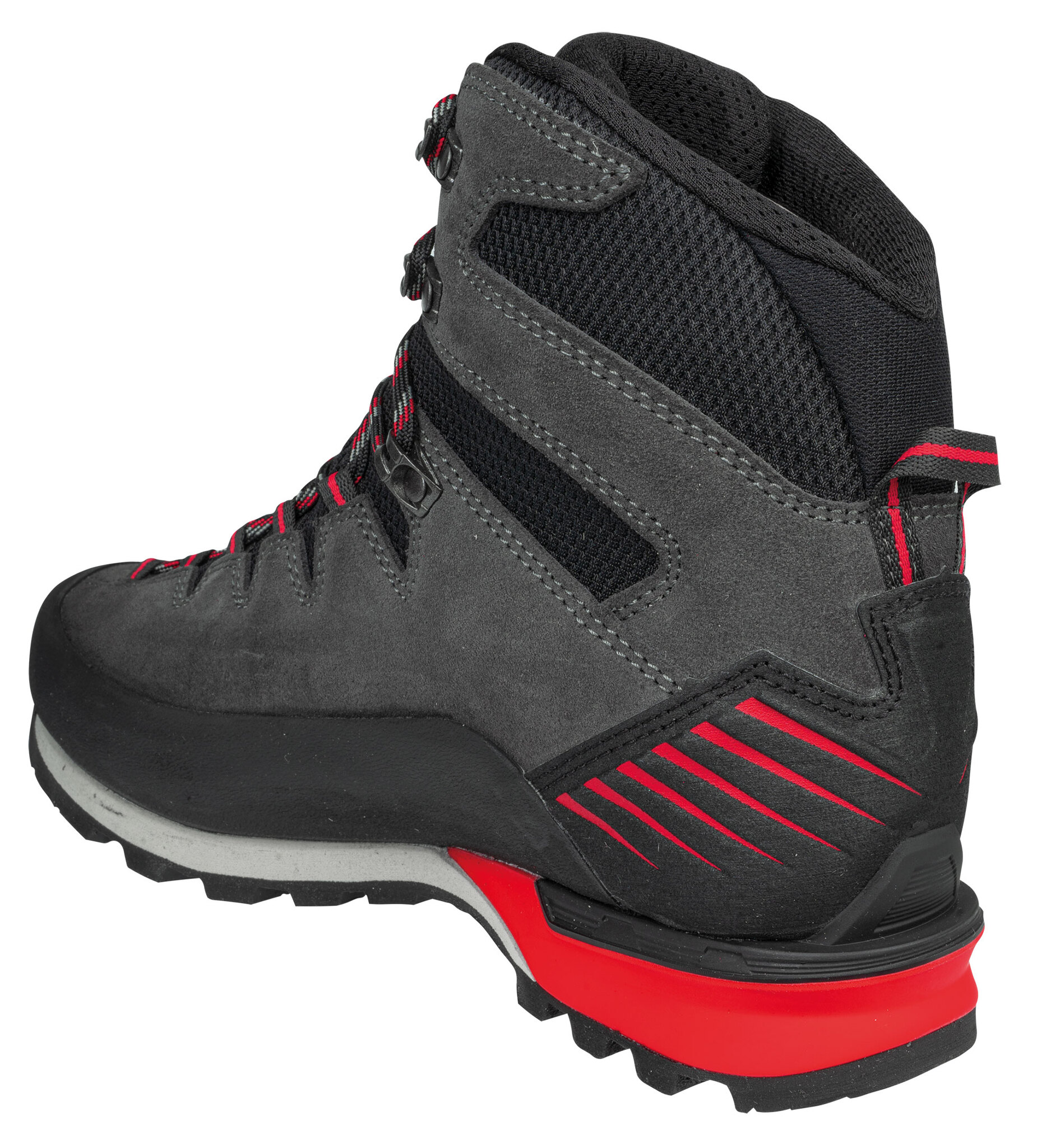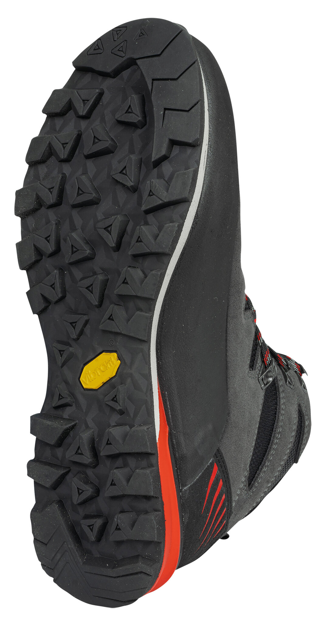 Легкие и устойчивые треккинговые ботинки Makra MID Pro GTX оснащены водонепроницаемой мембраной GORE-TEX и прочной кожей верха Perwanger. Для изготовления легкой, но особенно устойчивой подошвы используется комбинация полиуретана, TPU и EVA. Полиуретановая подошва в пятке со встроенной опорой из TPU обеспечивает идеальную амортизацию, EVA в передней части стопы обеспечивает точность подхода. Подошва Vibram® Makra обеспечивает отличное сцепление. Команда мечты! hanwag "2 Zone Lock" с механическим фиксатором обеспечивает улучшенную фиксацию пятки. В отличие от обычного крючка-фиксатора, механический фиксатор надежно фиксируется и не может соскользнуть после фиксации. Особенностью семейства Makra является оптимизированная шнуровка до носка - благодаря этому шнурки продеваются через текстильные петли. Таким образом, нога обеспечивает хорошее сцепление даже в передней части. Alpine Wide last предлагает немного более широкую переднюю часть стопы для большего комфорта, при этом обувь не теряет характеристик при лазании и точности подхода.