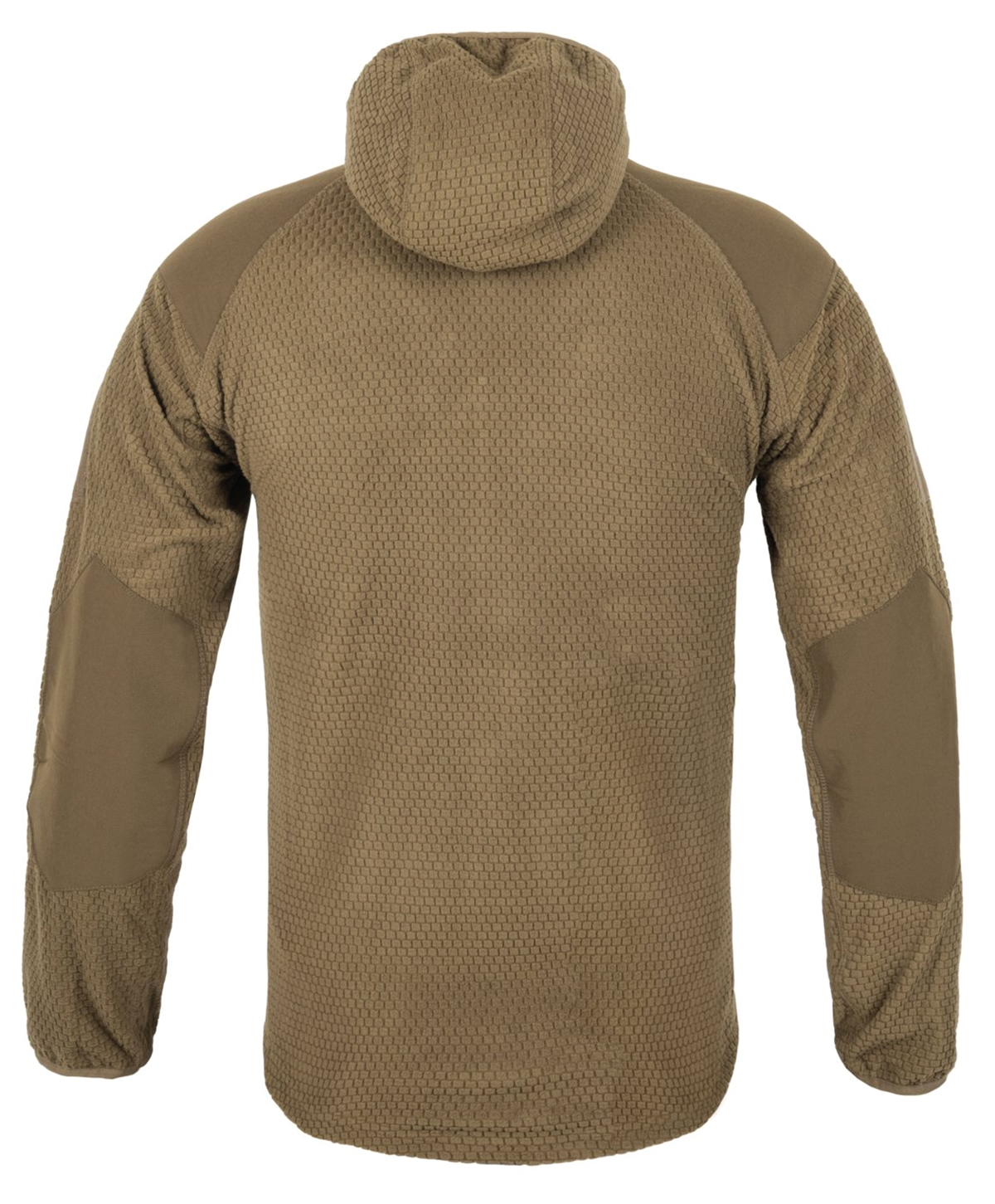 The Helikon Alpha Hoodie fleece jacket is the basic insulation layer from the Urban Tactical line, which can be worn in conjunction with softshell, hardshell or on its own. The special feature of the Grid Fleece is the waffle structure. This knit construction makes the material lightweight, provides sufficient ventilation and at the same time shows high insulation capabilities. Elastic reinforcements on the elbows and shoulders prevent the fleece from being damaged during use. The lightweight and small packable Alpha Hoodie can be compressed and easily transported in a backpack or bag. It provides instant warmth in low temperatures. The mesh lining improves the pleasant handling and skin comfort